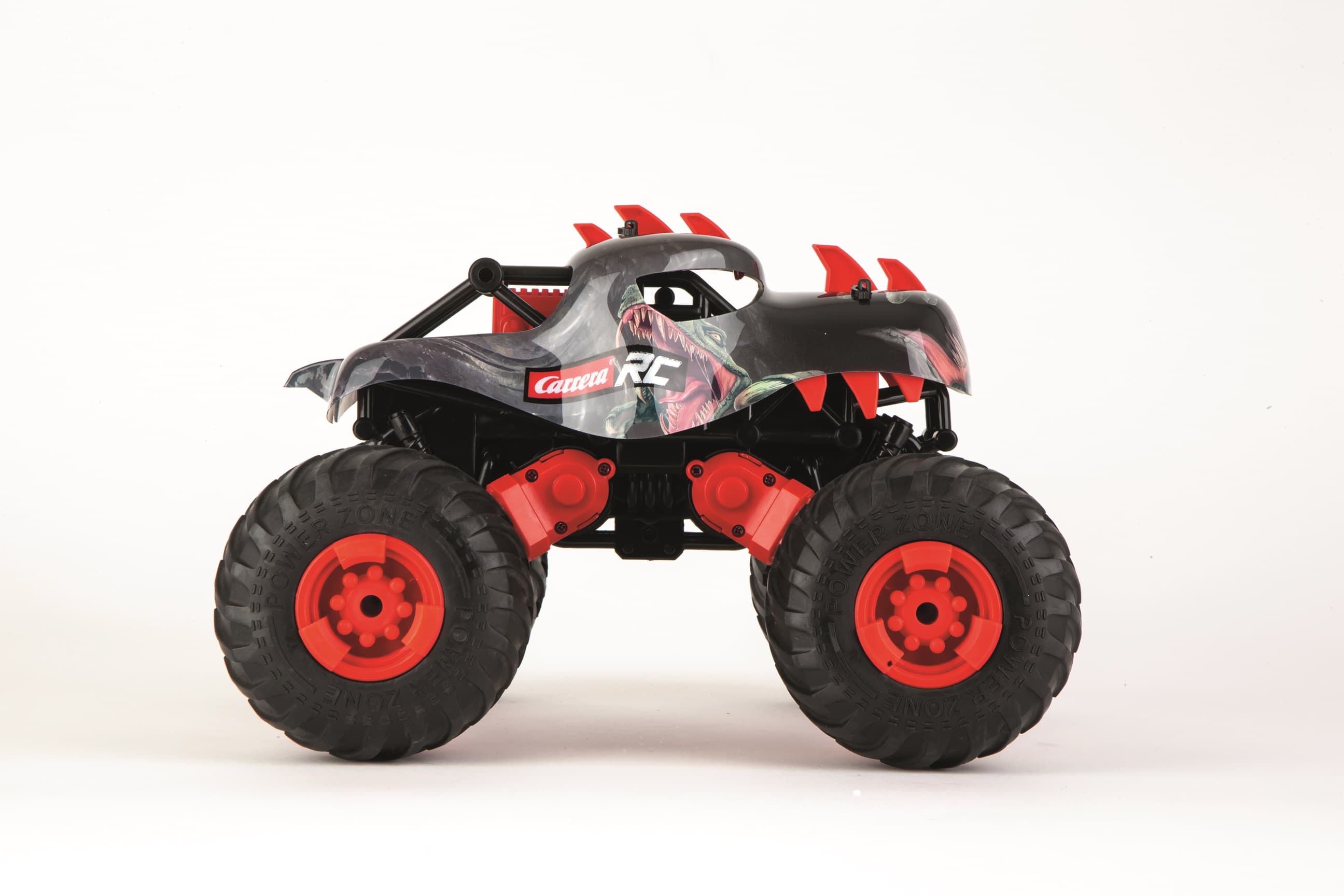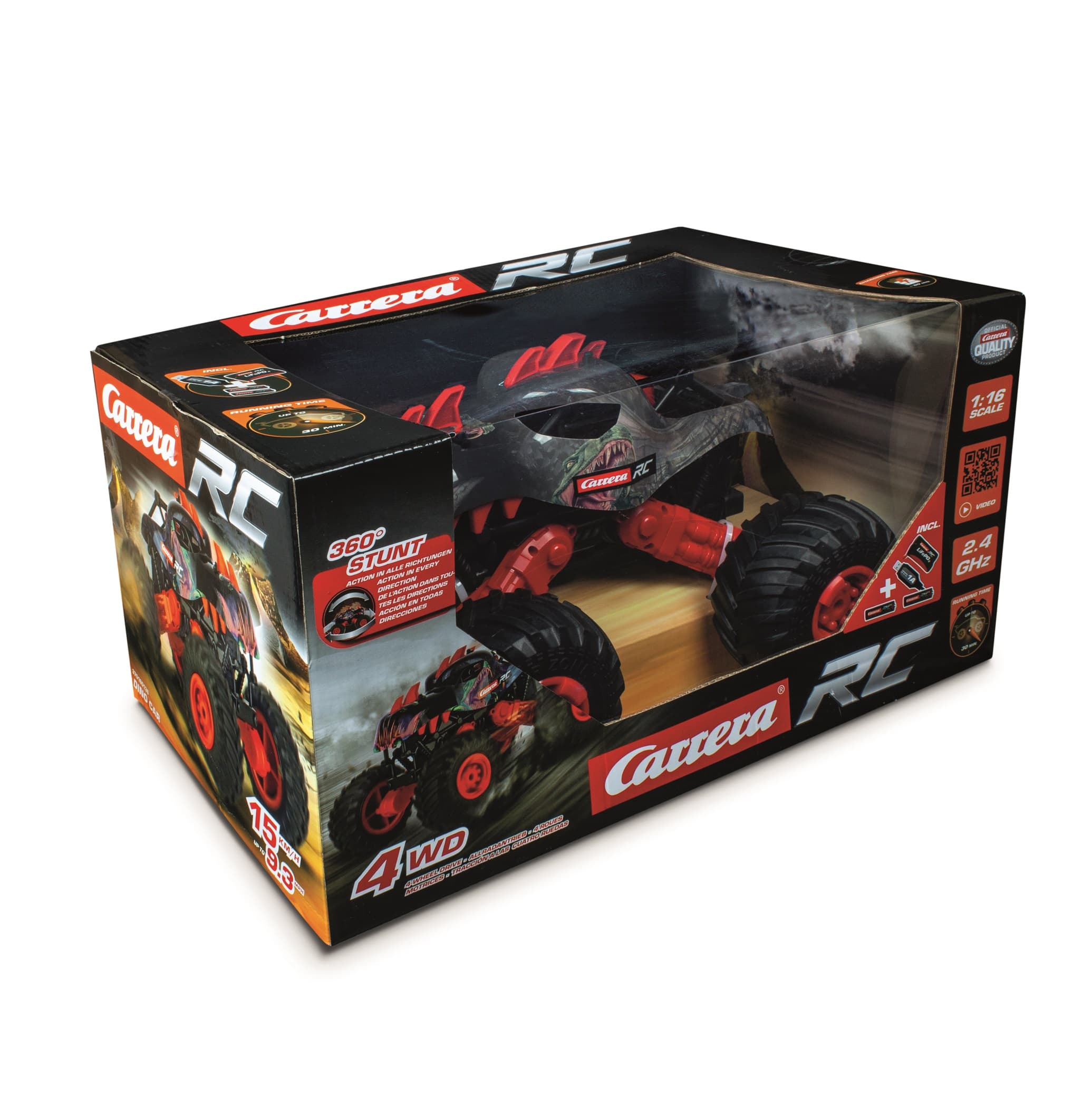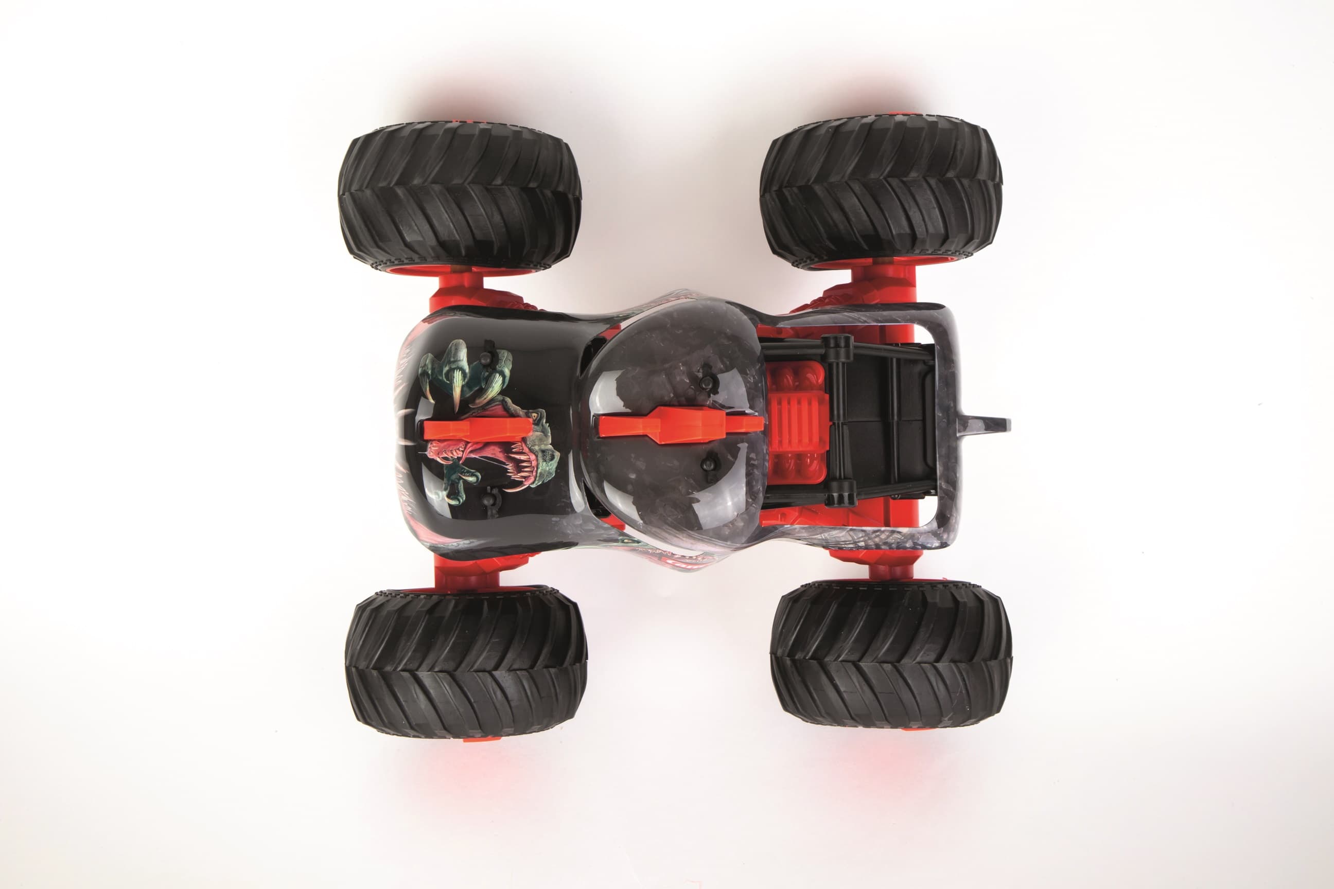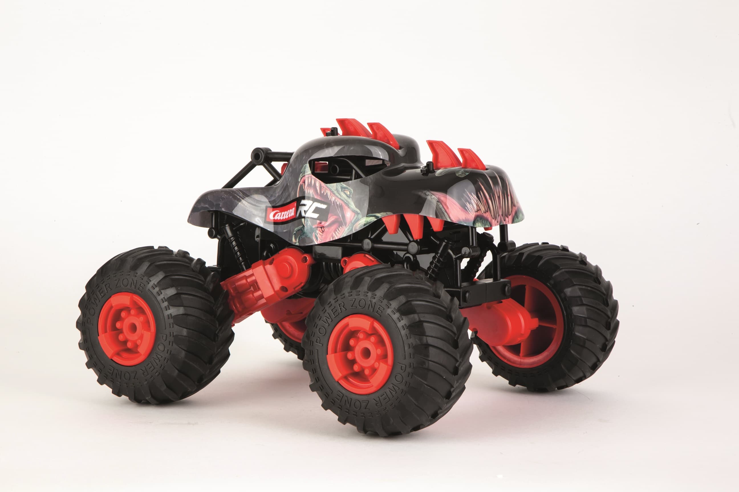 Prähistorischer Powerprotz: das Dino Car Mit dem Dino Car beeindruckst du deine Rennmitstreiter mit Stunts, die in jedem Zeitalter und auf jedem Terrain für Eindruck sorgen. Mit unerwarteter Eleganz dreht er sich mit beim 360° Stunt um die eigene Achse und selbst anspruchsvoller Offroad Untergrund ist dank seiner mächtigen Reifen und dem Vierrad-Antrieb für ihn keine Herausforderung – er stampft einfach, wie es sich für einen Dino gehört, alles nieder. Inhalt: Fahrzeug und Controller * READY TO RUN inkl. wiederaufladbarem Akku, 1A USB Ladekabel und Batterien