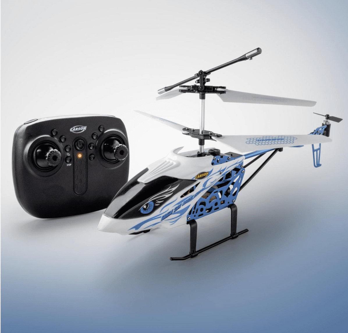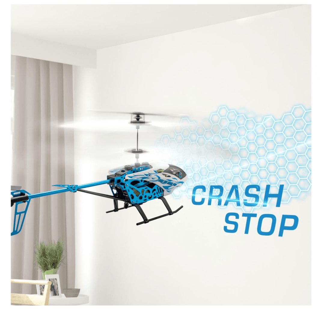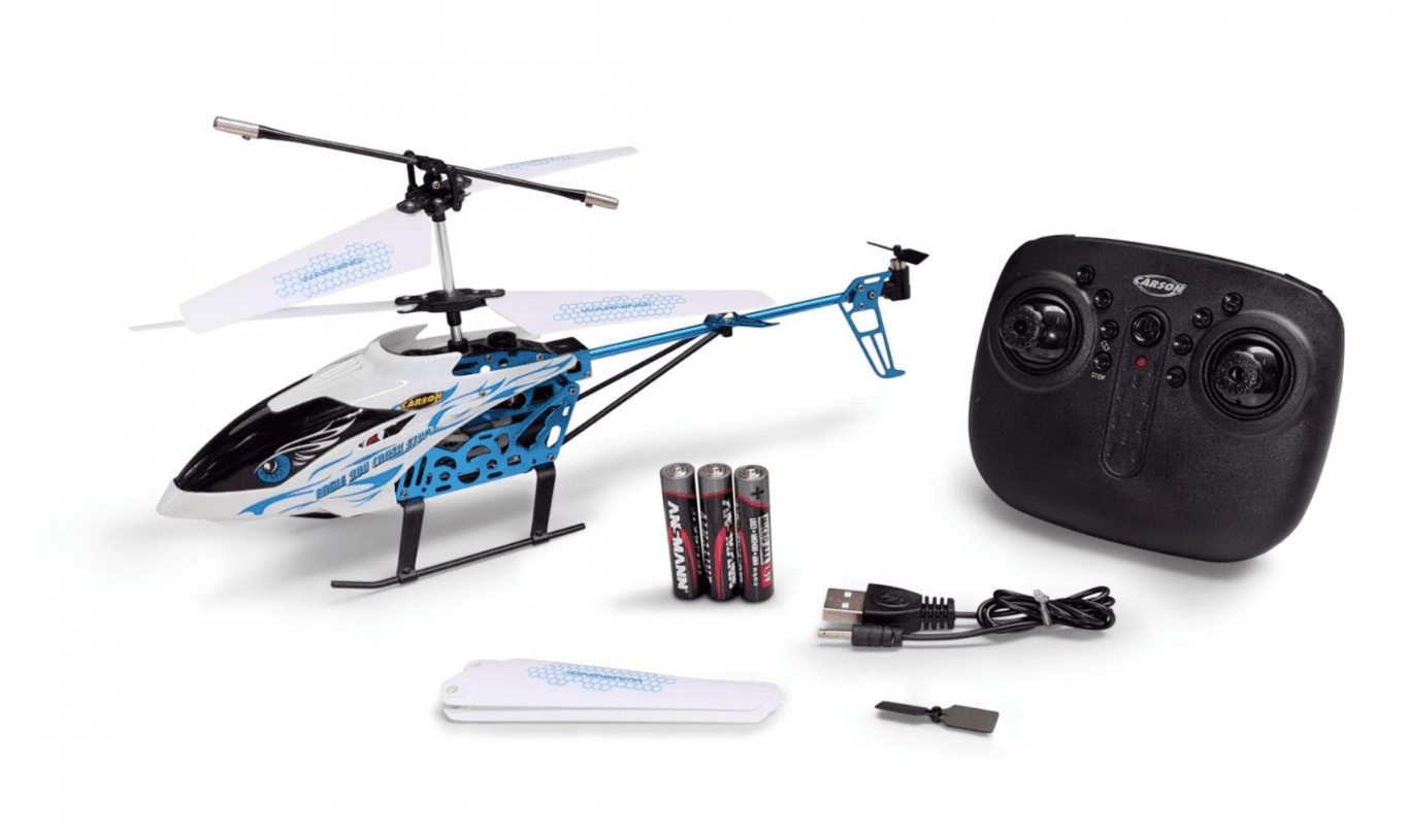 Der Carson Eagle 280 Crash Stop ist ein robuster und funktionsreicher RC-Helikopter, ideal für Einsteiger ab 8 Jahren. Dank der Crash-Stop-Technologie erkennt der Helikopter Hindernisse und fliegt automatisch ein bis zwei Meter zurück – für mehr Sicherheit beim Fliegen. Die automatische Höhenkontrolle sorgt für einen stabilen Schwebeflug, während die Start- und Landefunktion den Einstieg besonders einfach macht.