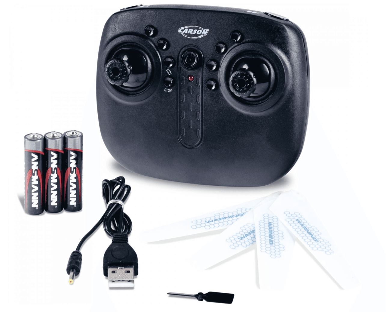 Mit dem CARSON Easy Tyrann 280 Crash Stop bist du sowohl indoor als auch outdoor immer sicher unterwegs: Dank Crash-Stop-Sensor erkennt der ferngesteuerte Helikopter Hindernisse im vorderen Bereich, stoppt und fliegt circa ein bis zwei Meter zurück. Das robuste Alu-Chassis sorgt für eine hervorragende Stabilität in der Luft. Die automatische Höhenkontrolle ermöglicht zudem einen stabilen Schwebeflug. Und auch bei Start und Landung kann dank automatischer Start- und Landefunktion nichts passieren. Für zusätzliche Sicherheit sorgt ein Not-Aus-Knopf am Sender. Geliefert wird der Easy Tyrann 280 Crash Stop mit allem zum Betrieb nötigen Zubehör (2.4 GHz Fernsteuerung, Flugakku und USB-Ladekabel) sowie einem Ersatzrotor-Set. Somit kannst du direkt nach dem ersten Ladevorgang abheben!