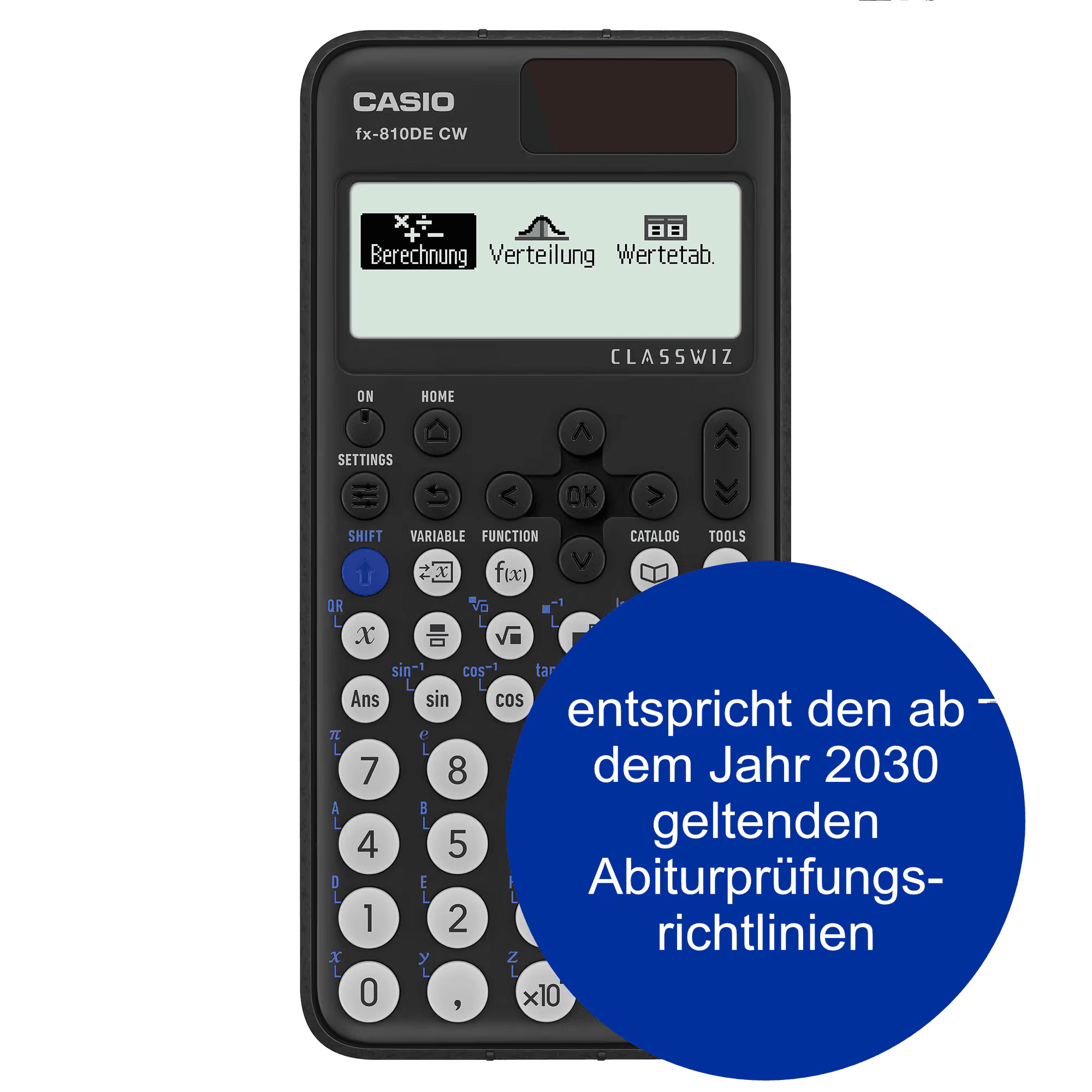 Der wissenschaftliche Schulrechner Casio FX-810DE CW ClassWiz entspricht den ab dem Prüfungsjahr 2030 geltenden Richtlinien für die Abiturprüfung im Fach Mathematik.