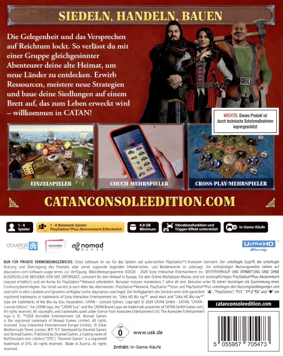 Spiele das offizielle Videospiel CATAN auf der Konsole! Erwirb Ressourcen, meistere neue Strategien und baue deine Siedlungen auf einem Brett auf, das zum Leben erweckt wird. Fordere Freunde sowohl online als auch zu Hause heraus oder spiele gegen intelligente und dynamische KI und werde der Cataner, der siegt!