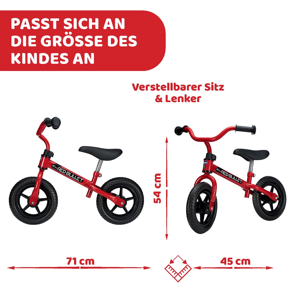 Das erste Kinderfahrrad, das hilft, die nötige Balance auf zwei Rädern zu entwickeln, um später ein echtes Fahrrad mit Pedalen fahren zu können.Hergestellt aus ultraleichtem Metall,Verstellbarer Lenker und Sitz für ein wachsendes Kind,Nutzungsdauer: 2 bis 5 Jahre (Höchstgewicht: 25 kg).