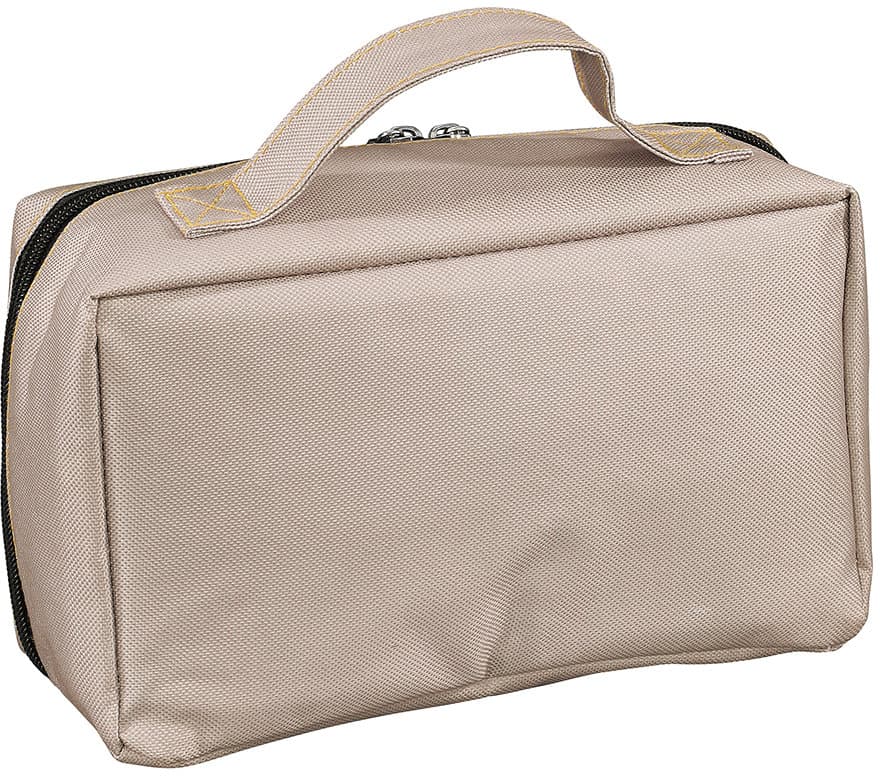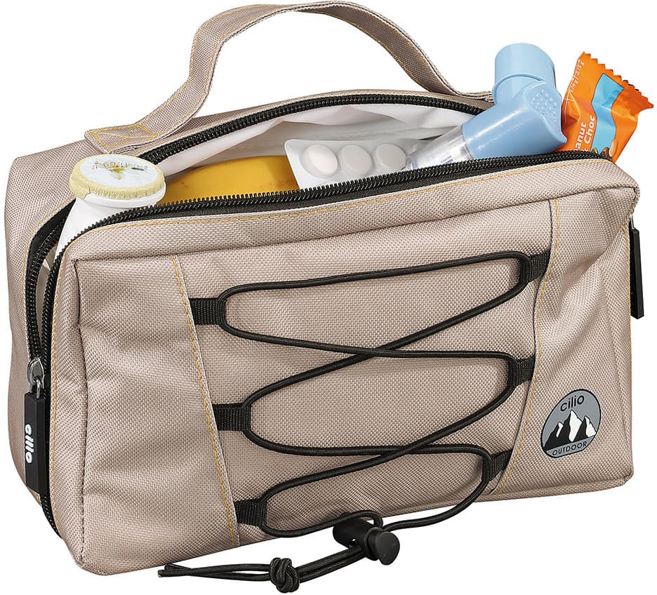 Die Isoliertasche ist ideal zum Aufbewahren von Kosmetik, Medikamenten, Snacks und vielem mehr. Sie besteht aus strapazierfähigem Polyester und verfügt über eine aufgeschäumte Isolierfolie, die den Inhalt zuverlässig temperiert hält. Ein praktischer Tragegriff sowie das Hauptfach mit Reißverschluss sorgen für komfortable Handhabung. Zusätzlich bietet eine elastische, verstellbare Befestigungskordel auf der Vorderseite weiteren Stauraum für kleine Gegenstände.