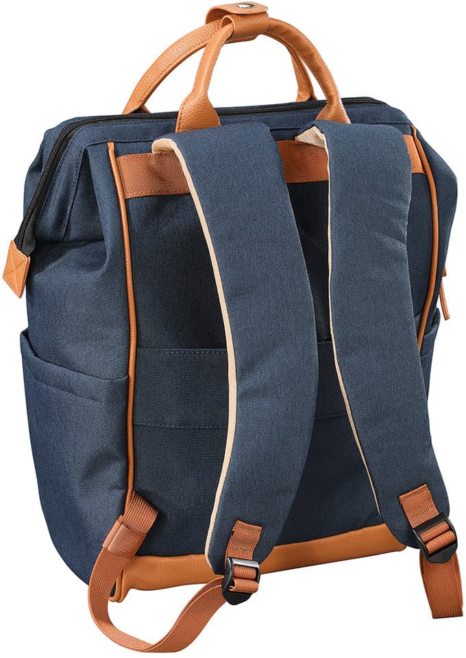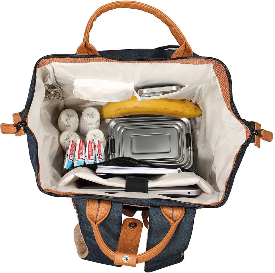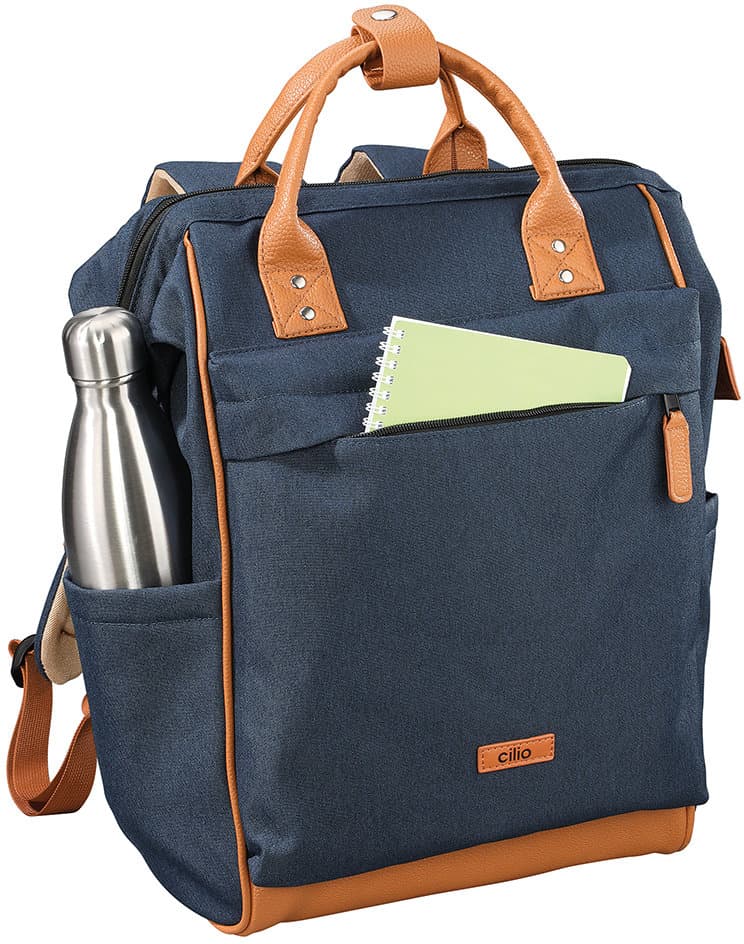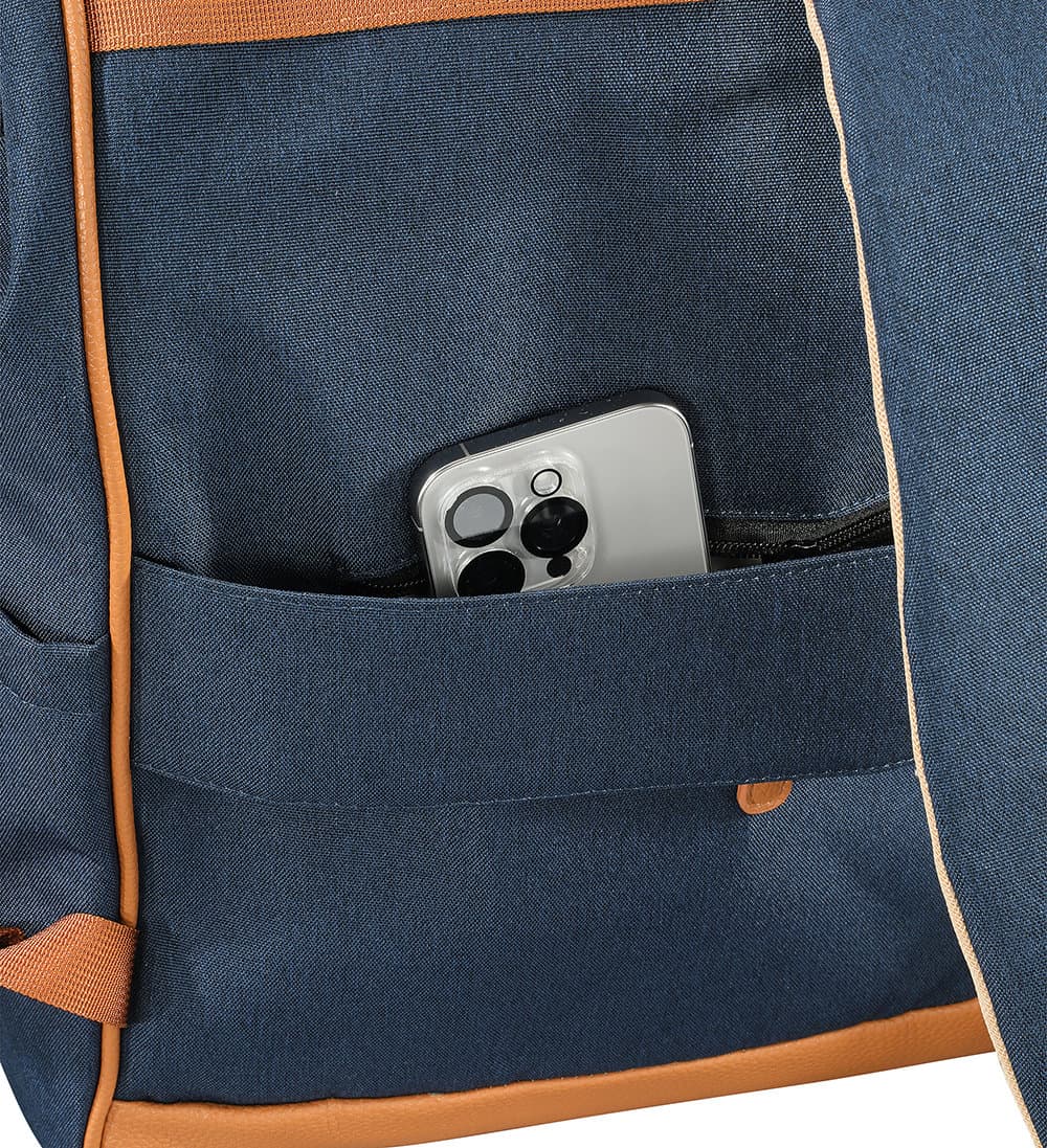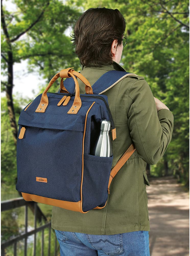 Dieser Rucksack überzeugt durch strapazierfähigen Polyester mit gewachster, wasserabweisender Oberfläche und ist bei Bedarf einfach feucht abwischbar. Der Boden aus Kunstleder sorgt zusätzlich für Stabilität und Langlebigkeit. Dank der großen, metallverstärkten Öffnung mit praktischem 2-Wege-Reißverschluss lässt sich der Innenraum bequem erreichen. Für hohen Tragekomfort sorgen die verstellbaren, gepolsterten Schultergurte sowie die stabilen Tragegriffe mit Verschluss aus Kunstleder. Trotz seiner robusten Verarbeitung besitzt der Rucksack ein angenehm geringes Eigengewicht. Praktische Aufbewahrungsmöglichkeiten bieten eine Fronttasche mit Reißverschluss, zwei seitliche Taschen (Höhe: 21 cm) sowie ein verdecktes Reißverschlussfach auf der Rückseite. Im großzügigen Innenraum befinden sich ein gepolstertes Tablet- bzw. Laptopfach (29 x 27 cm) mit Klettriemen, ein zusätzliches Netzfach, eine Einstecktasche, eine Klappentasche mit Klettverschluss sowie ein Karabinerhaken für Schlüssel und andere Kleinigkeiten. Die Innenbeschichtung schützt vor Feuchtigkeit und ermöglicht eine einfache Reinigung. Mit einem Fassungsvermögen ist der Rucksack ein funktionaler und vielseitiger Begleiter für Alltag, Freizeit oder Reisen.