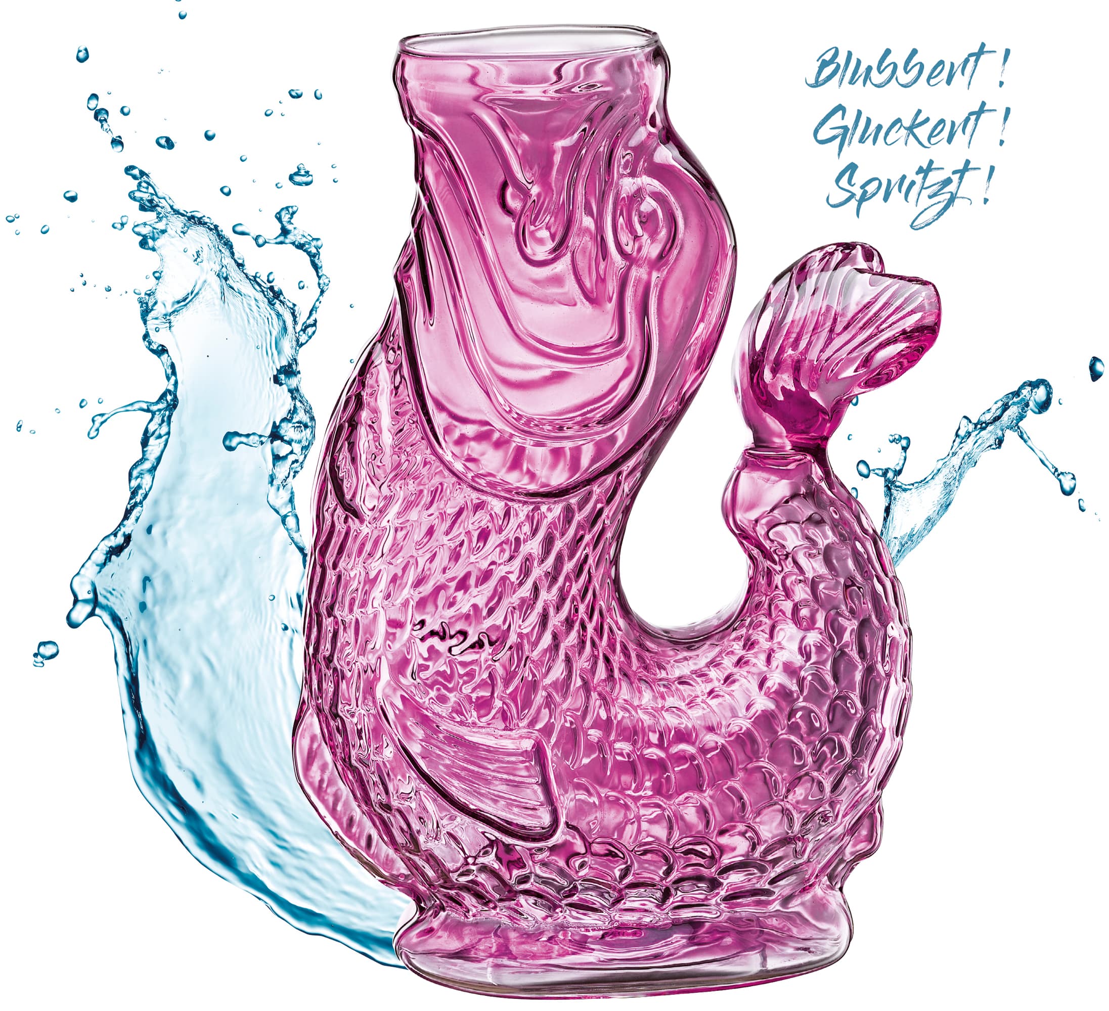- Gluckert beim Ausgießen, Breiter Hals für leichtes Befüllen und Hinzufügen von Eiswürfeln, Fischschwanz als Griff für sicheren Halt, Inhalt: 1 L, Handgefertigt, Borosilikatglas