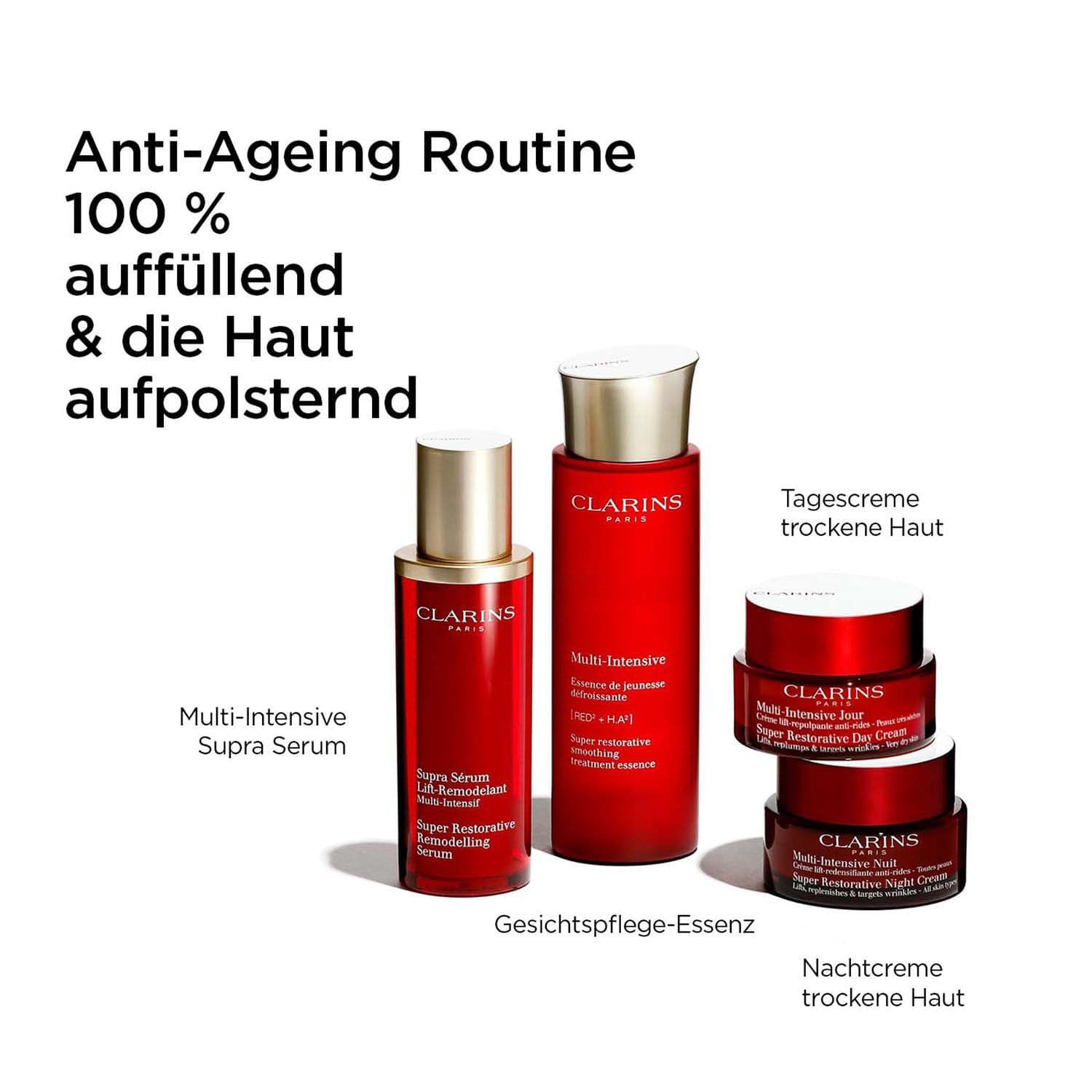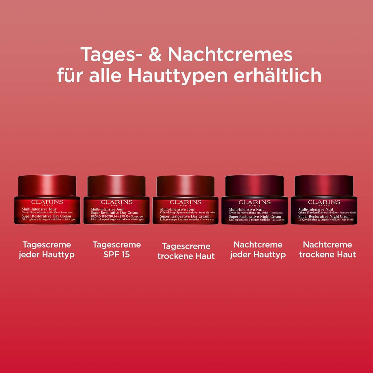 Diese Nachtcreme für das Gesicht mildert die negativen Auswirkungen altersbedingter hormoneller Veränderungen auf die Haut. Eine sofort glatter erscheindende Haut und Nacht für Nacht ein gleichmäßigeres Hautbild wie geliftet. Die Haut erstrahlt nach dem Aufwachen. Ihr Geheimnis? Ein kraftvolles Duo pflanzlichen Ursprungs: biologischer Haronga-Extrakt, ein natürlicher Aktivstoff so wirksam wie Retinol*, und biologischer Stechginster-Extrakt tragen zu mehr Hautdichte sowie einem Lifting-Effekt bei und wirken Spannkraftverlust entgegen. Die reichhaltige, cremige Textur enthält biologische Sheabutter, um die Haut mit Feuchtigkeit zu versorgen und intensiv zu nähren. Falten werden sichtbar geglättet. Die Haut ist straffer, praller und strahlender. Der frische, zart blumige Duft mit pudriger Herznote hinterlässt ein angenehmes Gefühl. Enthält den Clarins Anti-Pollution Complex.*Klinische Vergleichsstudie zur Wirksamkeit gegen Falten und zur Glättung der Haut bei 46 Frauen, die 56 Tage lang eine Base auftrugen, die entweder bio Haronga-Extrakt oder Retinol mit identisch prozentualem Anteil wie das finale Produkt enthielt.
