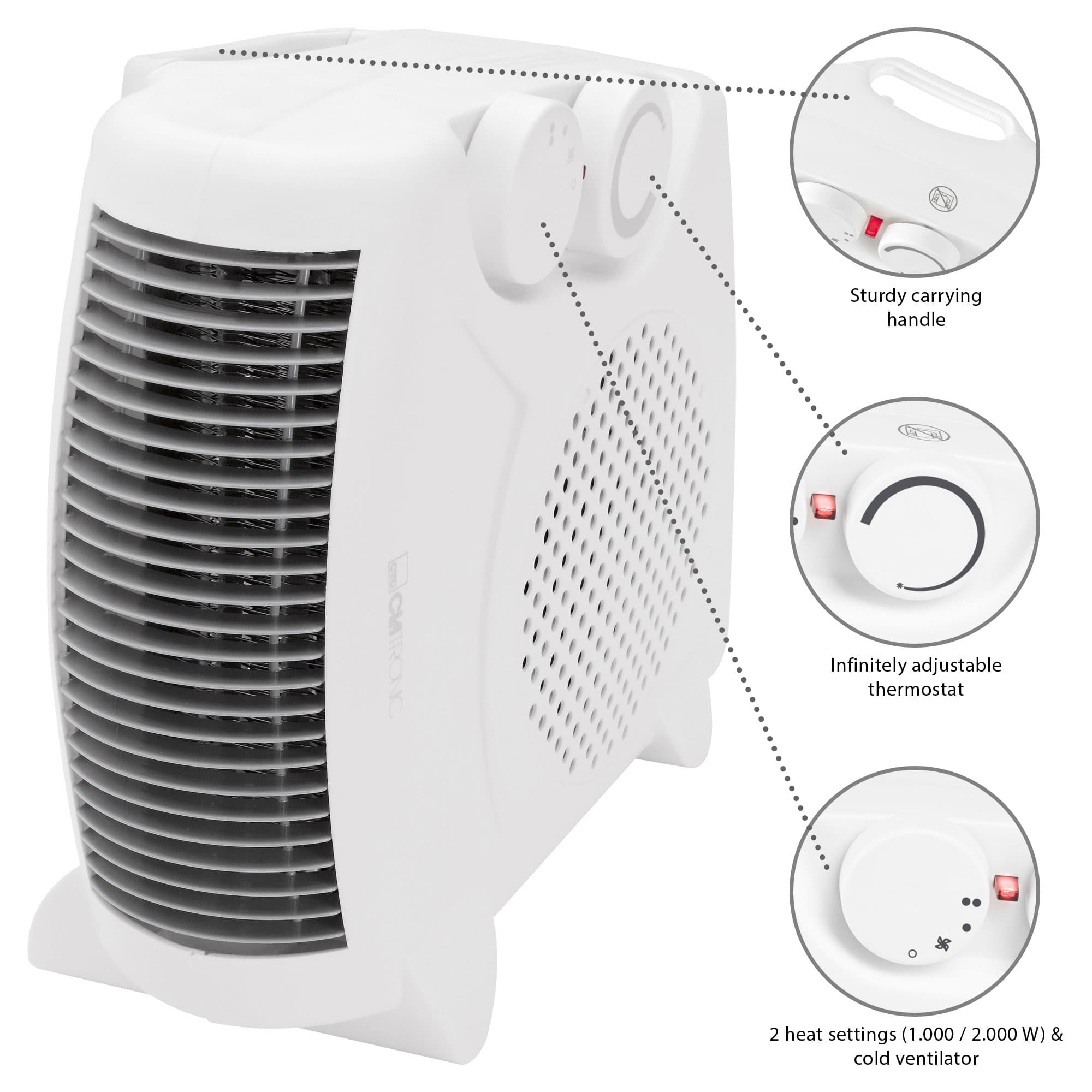 Der Heizlüfter von Clatronic ist leicht, kompakt und mit einem stabilen Tragegriff ausgestattet, sodass Sie ihn problemlos von Raum zu Raum transportieren können. Perfekt für diejenigen, die sich Wärme wünschen, egal wo sie sich gerade aufhalten.