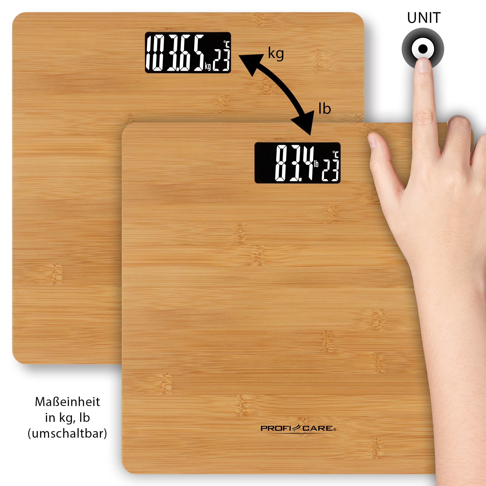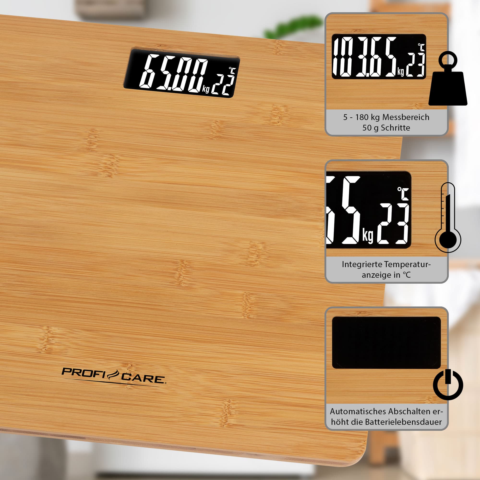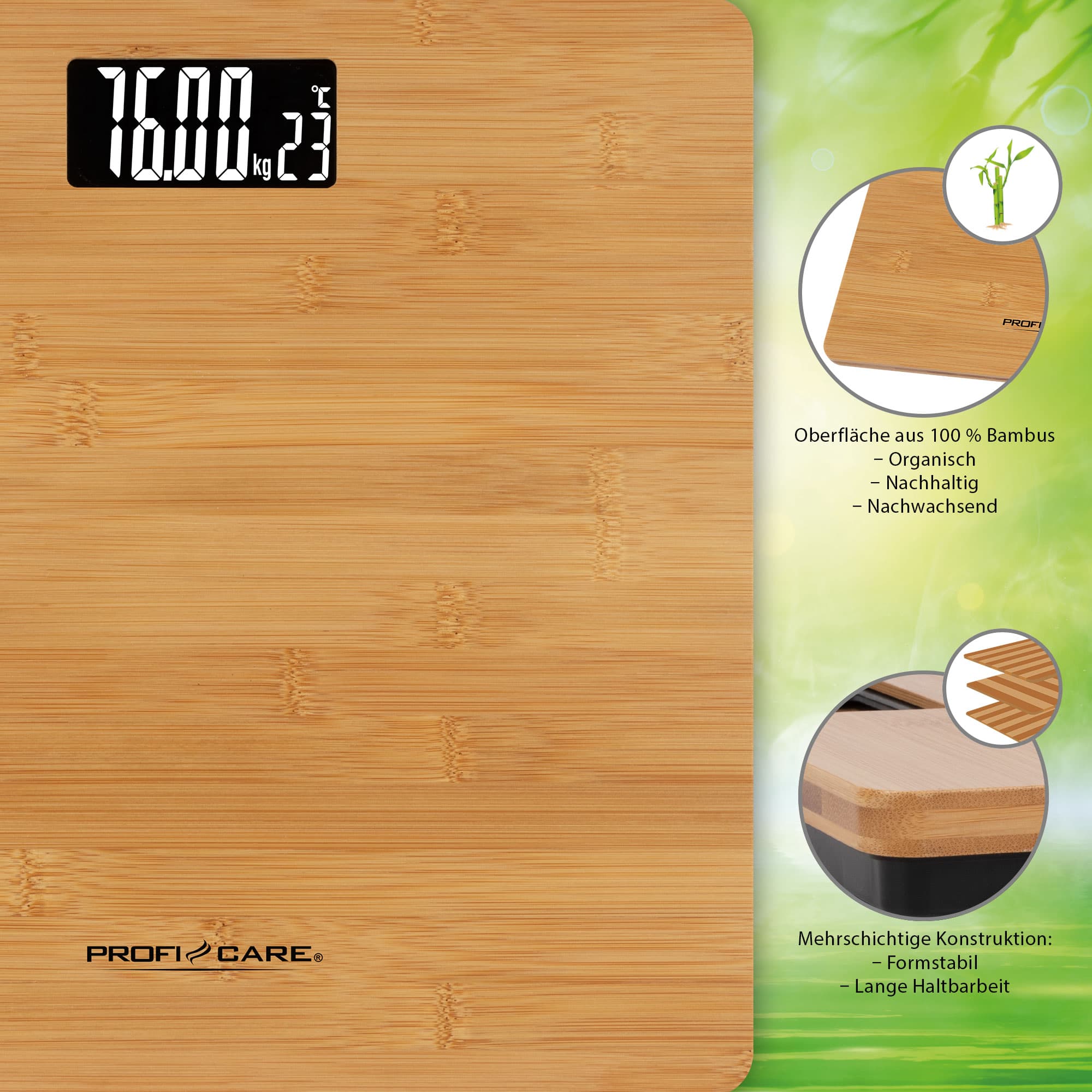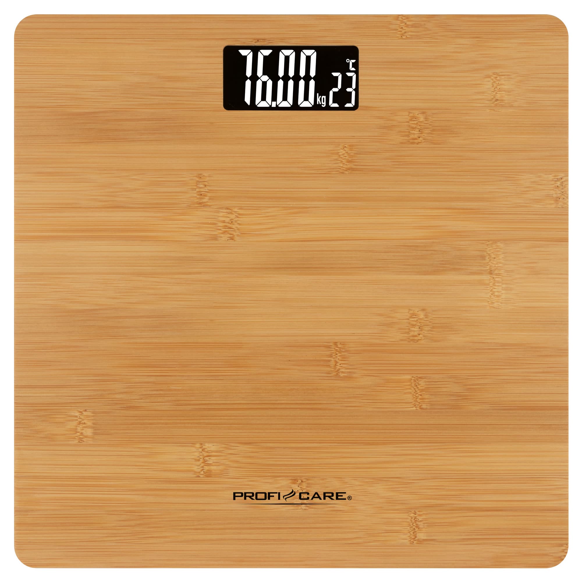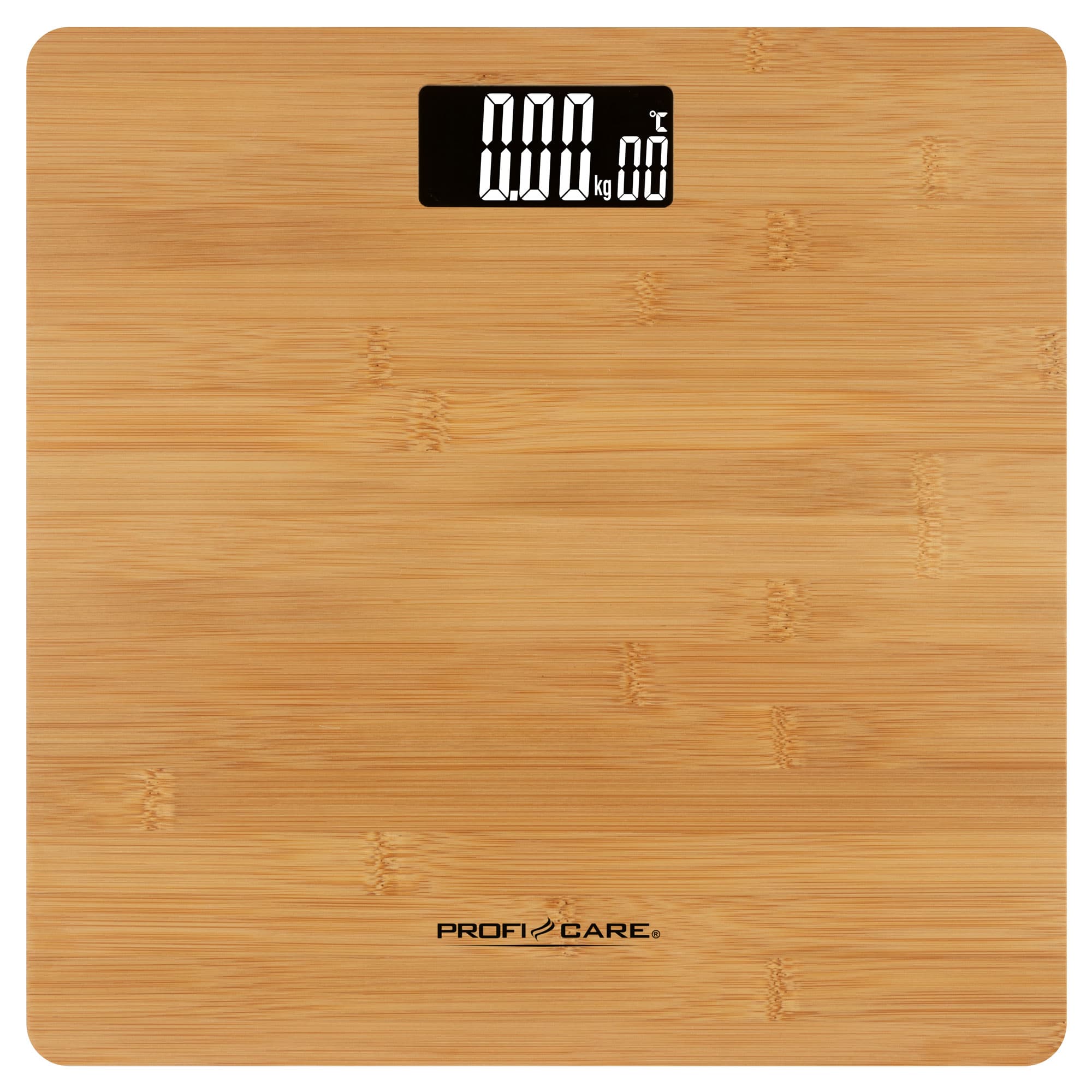 Proficare Personenwaage mit Thermometer 2 in 1, mit Bambus Oberfläche.