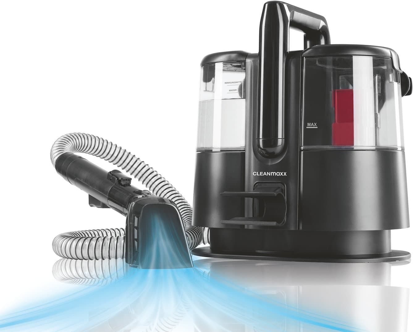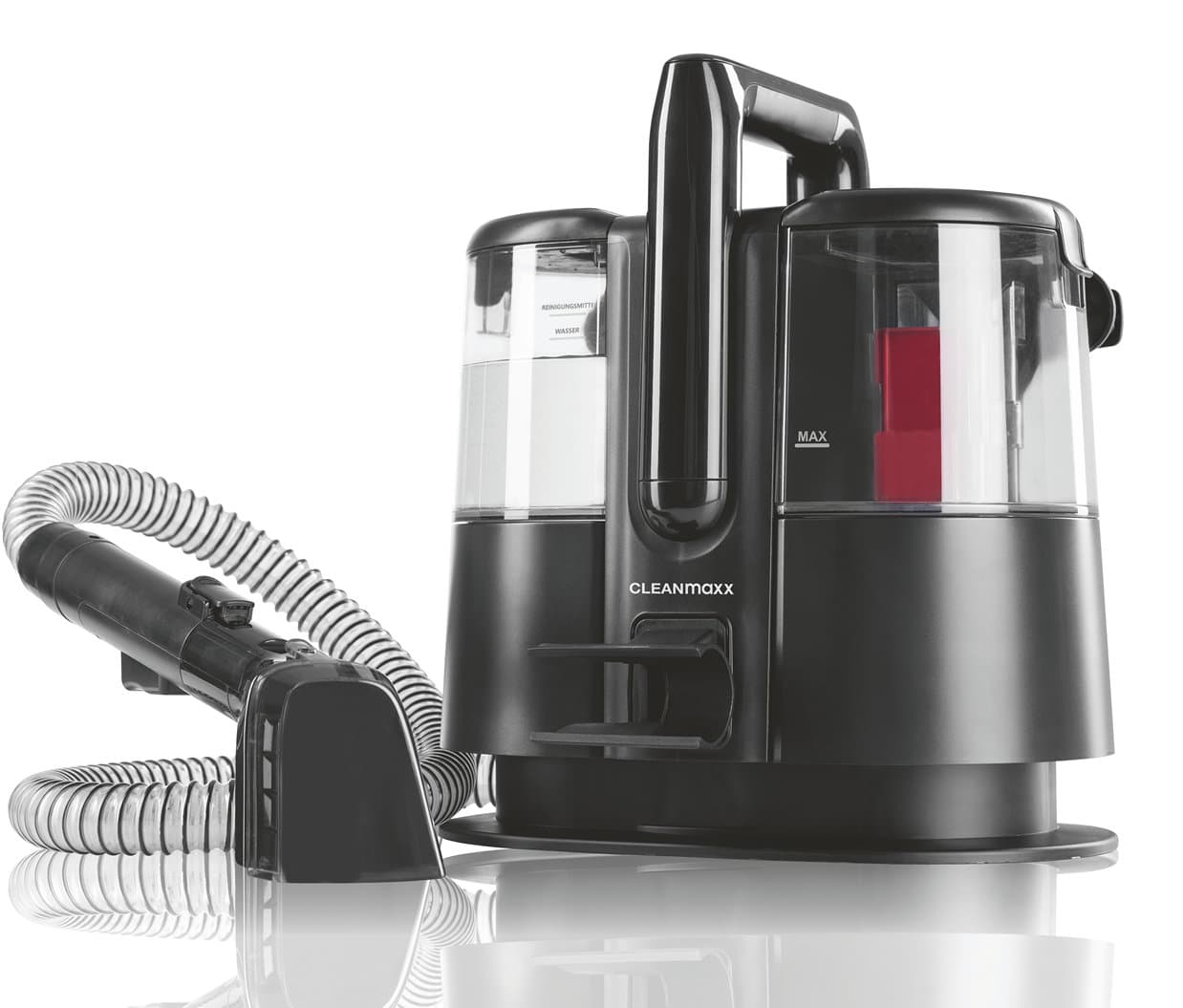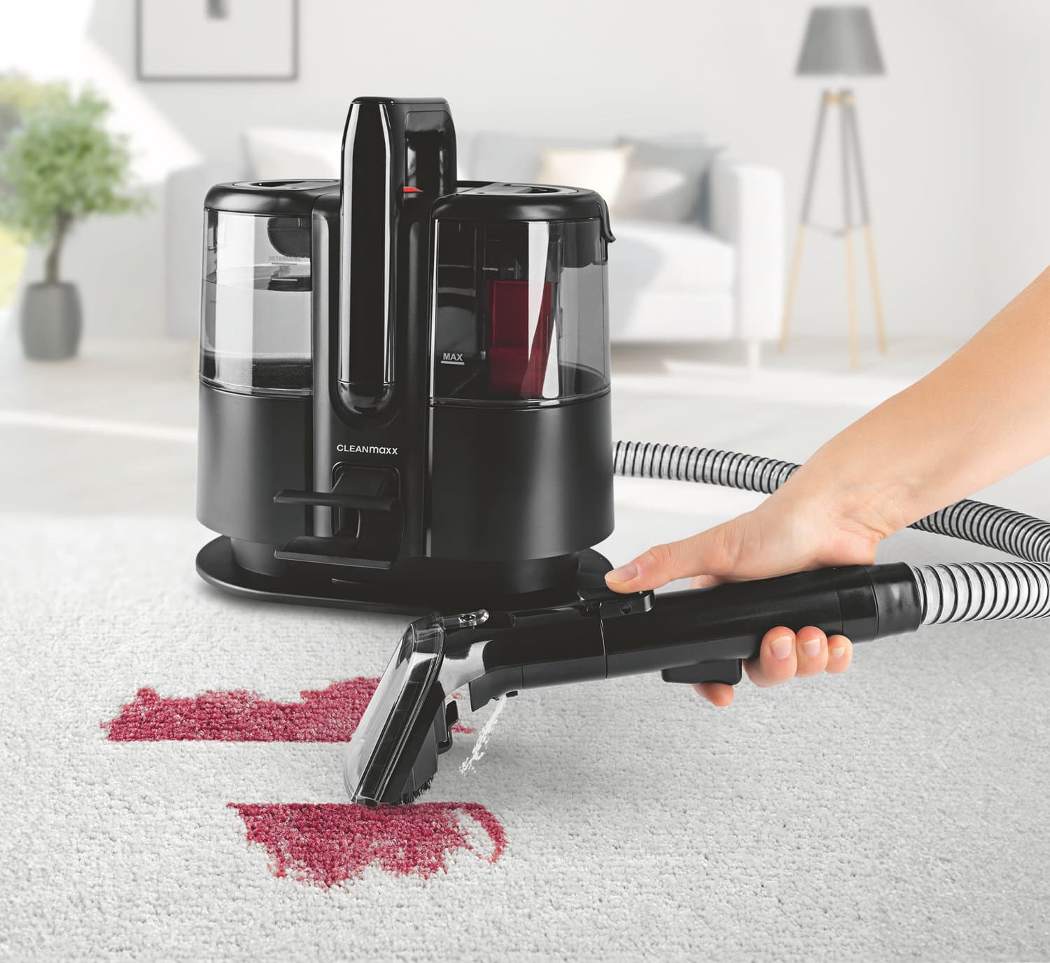 Ob Polstermöbel, Matratzen, große & kleine Teppiche, Kinder- oder Autositze: Der CLEANmaxx Polster- & Teppichreiniger Pro ist dank seines kompakten Designs besonders flexibel und komfortabel im Handling. Dabei trägt er auch noch die volle Anti-Flecken-Power in sich! Mit seinem cleveren Doppeltank-System, welches Schmutz- und Frischwasser zuverlässig voneinander trennt, eignet er sich perfekt für optimierte Reinigungsabläufe bei dir zu Hause.