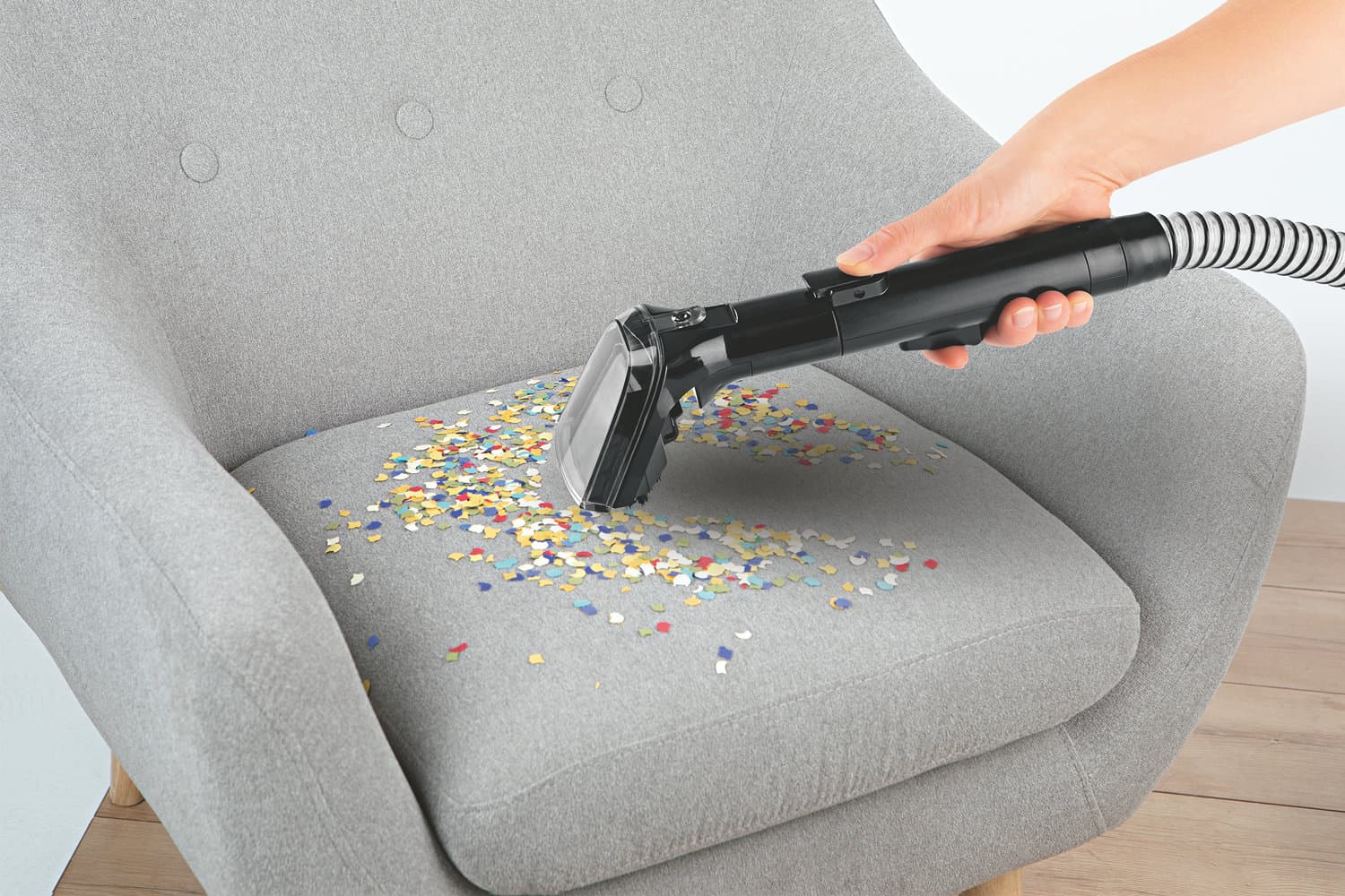 Befülle den Tank dank Easy-Fill ganz einfach von oben und los geht’s! Ob es um die Nassreinigung des Sofas, der Autositze oder Teppiche geht: Der CLEANmaxx Polster- & Teppichreiniger Pro ist mit zwei vielseitigen Düsen und mit einer praktischen Sprühfunktion ausgestattet, damit kein Fleck mehr zurückbleibt. Nutze die schmale 2in1-Fugendüse für die Polsterritzen im Auto oder die Kombidüse zur punktuellen Fleckenbeseitigung auf Teppichen, Läufern & Co. Du kannst also künftig die Ruhe bewahren, wenn mal etwas daneben gehen sollte. Denn Rotwein-, Saft,- Schokoladen- und viele weitere Flecken haben ab sofort keine Chance mehr!