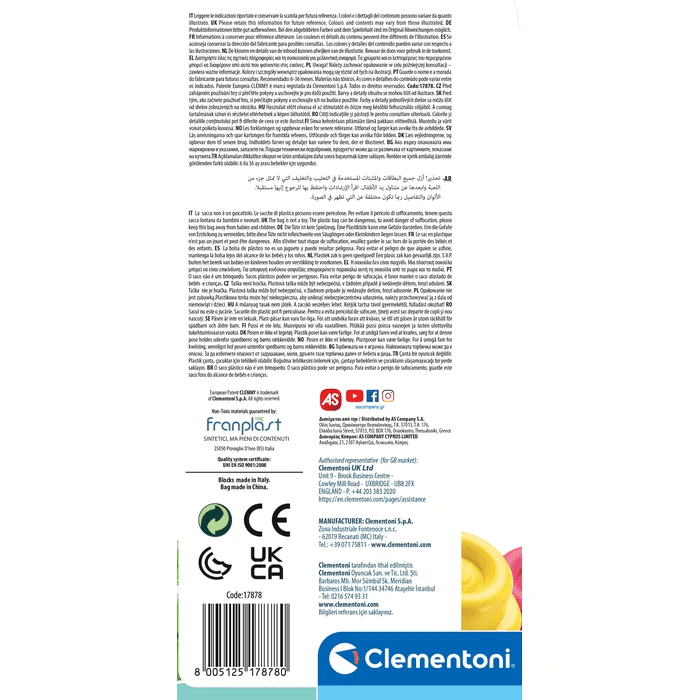 Die Clementoni Clemmy Bausteine im Beutel (40 Stück) bieten Babys und Kleinkindern besonders vielseitigen Spielspaß. Die ultraweichen, farbenfrohen Bausteine sind speziell für kleine Hände entwickelt und laden zum Greifen, Stapeln, Drücken und freien Entdecken ein. Durch ihre angenehme Haptik unterstützen die Clemmy Bausteine die sensorische Entwicklung, fördern die Hand‑Augen‑Koordination sowie die Feinmotorik und regen gleichzeitig Fantasie und Kreativität an. Die unterschiedlichen Farben schulen spielerisch die visuelle Wahrnehmung und steigern die Aufmerksamkeit. Das hochwertige, ungiftige und abwaschbare Material sorgt für maximale Sicherheit beim Spielen und eignet sich ideal auch für die ersten Konstruktionsversuche. Der praktische Beutel ermöglicht eine einfache Aufbewahrung und macht das Set auch unterwegs zum perfekten Begleiter. Ein umfangreiches Motorik‑ und Lernspielzeug für die frühkindliche Entwicklung – ideal für neugierige Entdecker.