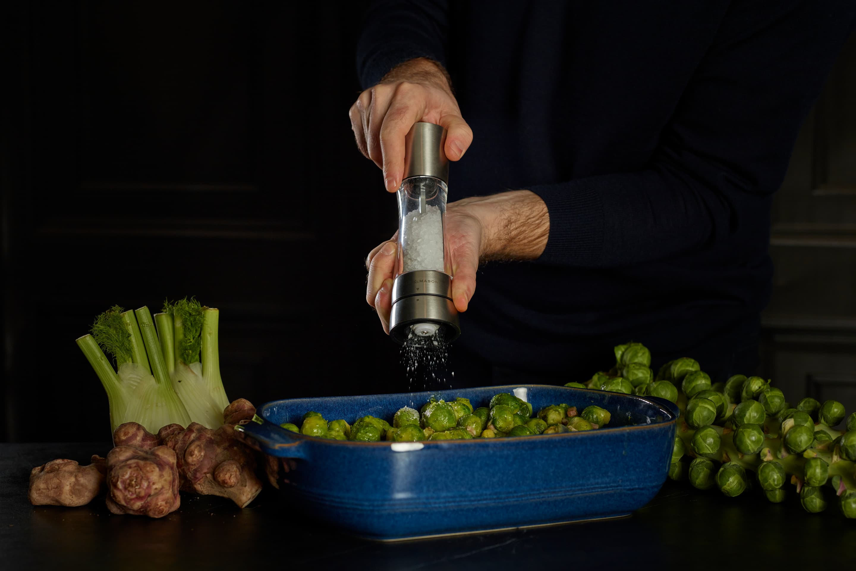 | Sonderfunktion | Fünf einstellbare Mahlstufen für Pfeffer und drei für Salz, von grober Körnung bis hin zu feinstem Salz- bzw. Pfefferstaub; Salz enthalten. |