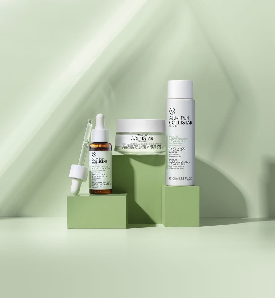 Serum für gesunde& reine Haut. Das konzentrierte Salicylic Acid + Succinic Acid Serum von Collistart reinigt die Haut nach und nach und mildert Unregelmäßigkeiten dank Salicylsäure. Bernsteinsäure, ein kostbares Molekül mit antibakterieller und antioxidativer Wirkung, reduziert die Talgproduktion und beugt der Talgansammlung in den Poren vor. Die Haut wird mattiert, das Hautbild geglättet und verfeinert. Für alle Hauttypen geeignet, auch für empfindliche Haut. Besonders zu empfehlen für Mischhaut und Haut mit Unregelmäßigkeiten. Kombinieren Sie das Serum mit einer Attivi Puri Creme, die am besten zu Ihren Bedürfnissen passt: Machen Sie den Test und entdecken Sie das Programm von COLLISTAR Attivi Puri– Pure Actives.