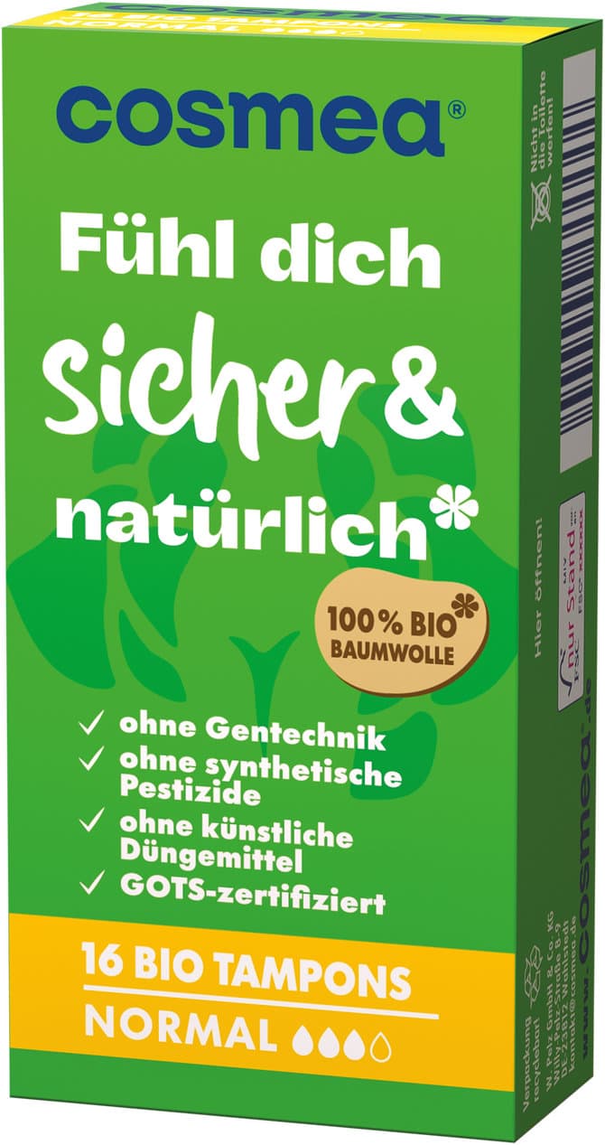 Die Cosmea® BIO Tampons Normal bieten eine zuverlässige Begleitung für die Monatshygiene.