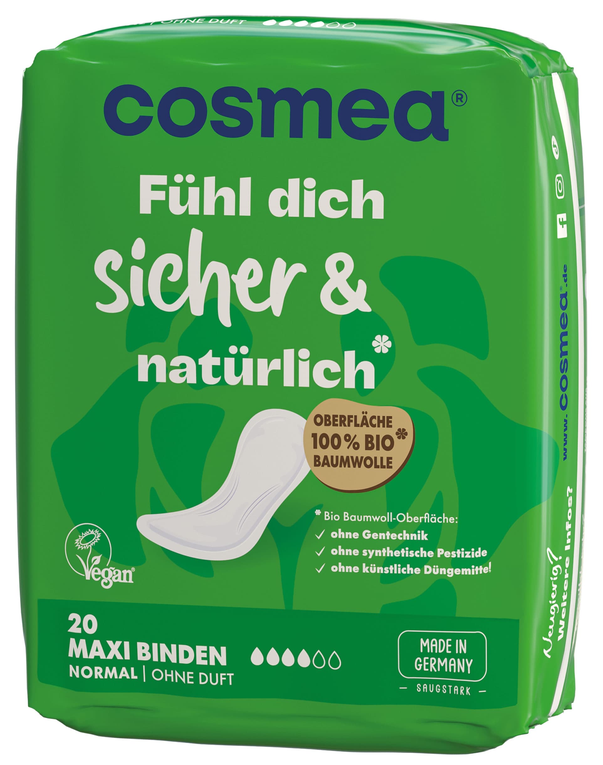 Cosmea® Comfort Bio Maxi Binden, VEGAN, Normal ohne Duft