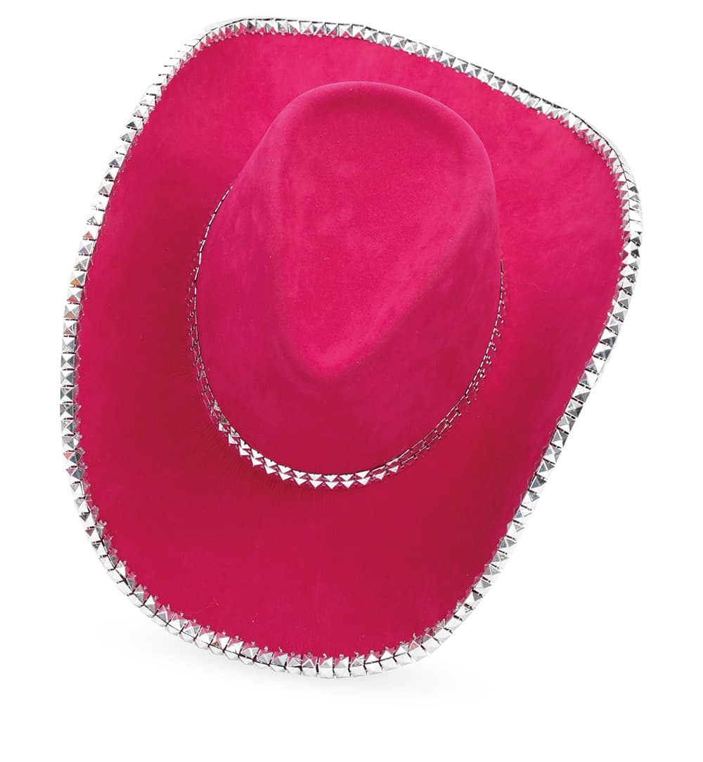 Lust, aufzufallen? Kein Problem mit diesem exklusiven Cowboyhut in knalligem Pink! Einen ganz besonderen Charakter erhält das tolle Teil durch die großen, silbernen Nieten. Ob auf dem Festival oder bei der Party, mit diesem Hut werden Sie gesehen!