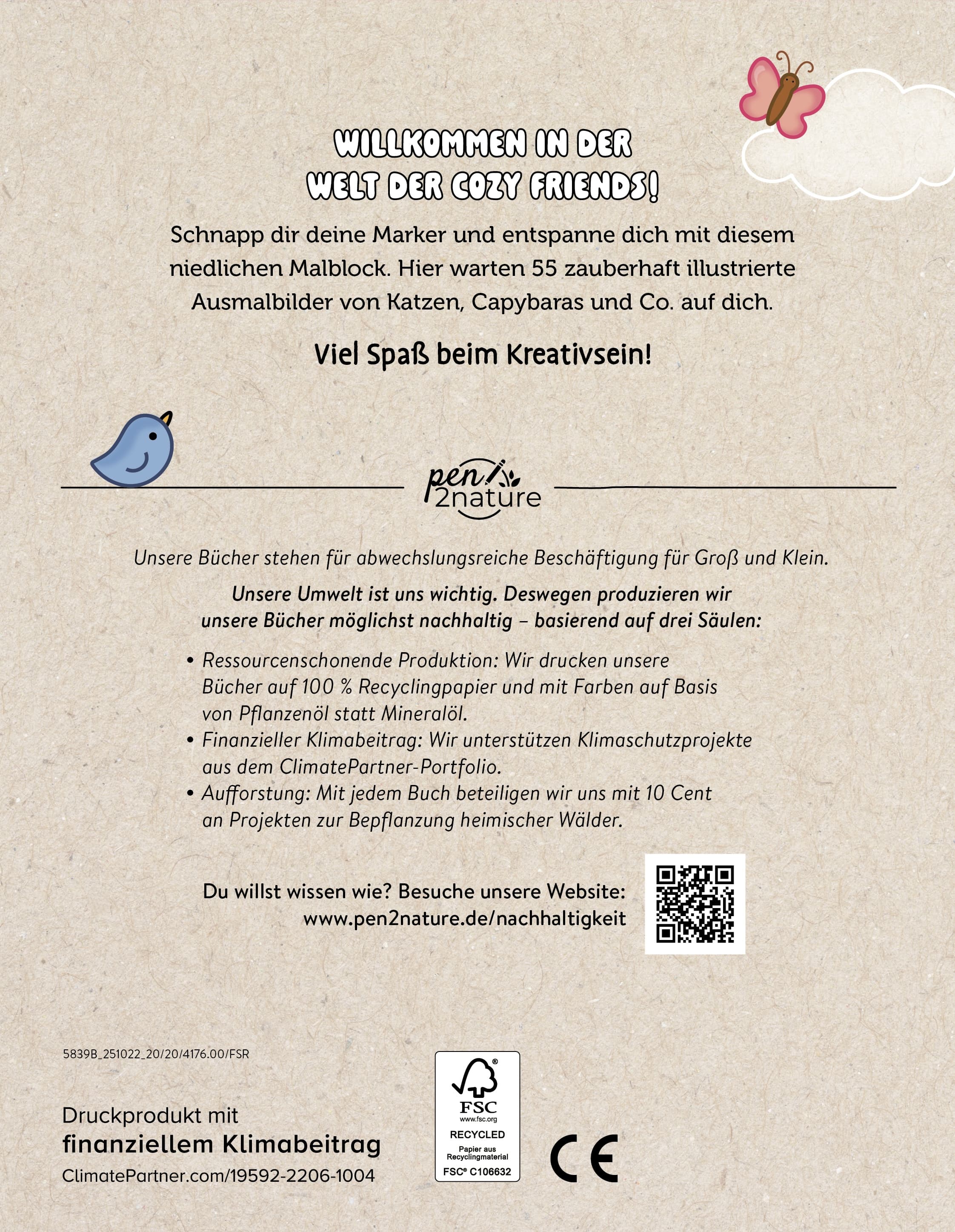Cozy Friends: Wohlfühl-Malblock Cozy Coloring | Ausmalen und entspannen