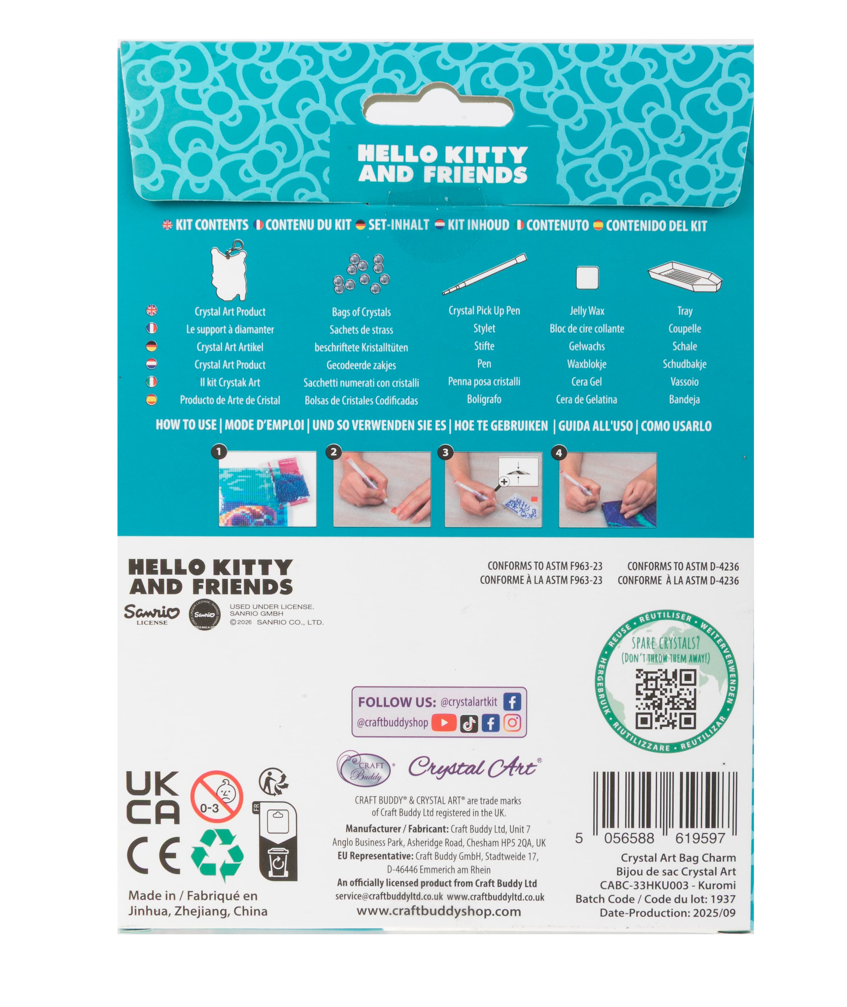 Craft Buddy - Crystal Art Diamond Painting BAG CHARM KUROMI CABC-33HKU003