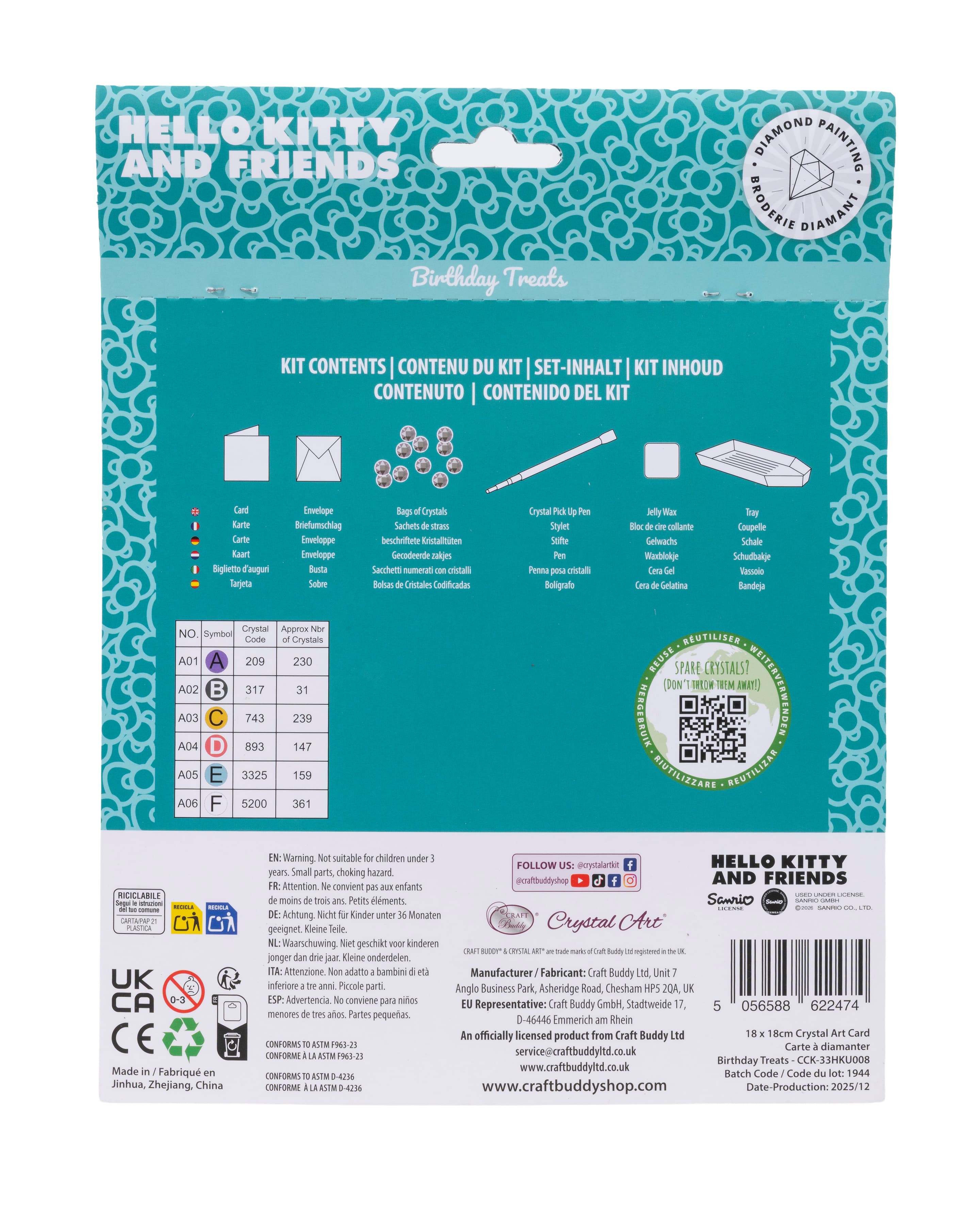 Craft Buddy - Crystal Art Diamond Painting CARD KIT Hello Kitty CCK-33HKU008