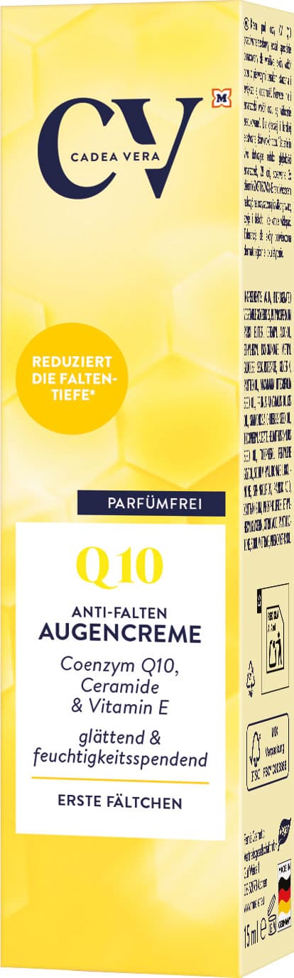 Die CV Q10 Anti-Falten Augencreme wurde speziell für die empfindliche Augenpartie mit ersten Anzeichen der Hautalterung entwickelt und macht diese widerstandsfähiger. Erste Linien & Fältchen