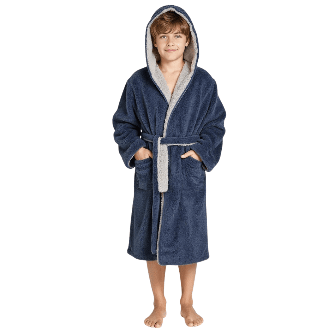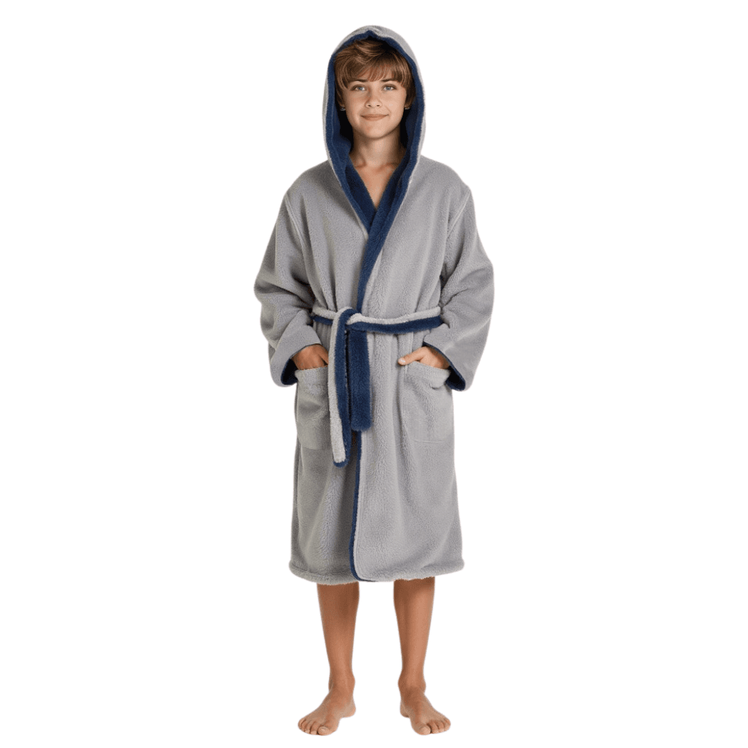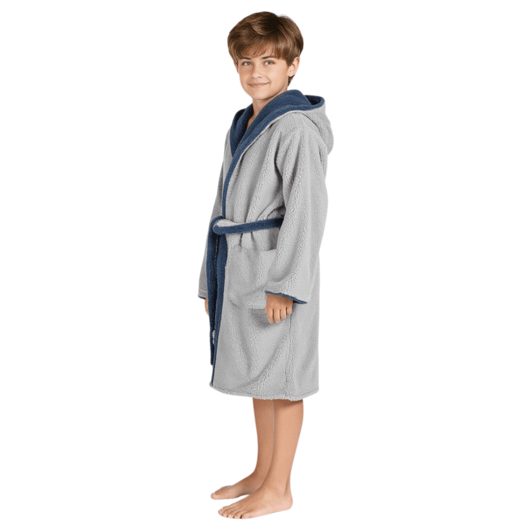 Kuscheliger Wende-Bademantel für Kinder – mit Kapuze, Taschen & Gürtel