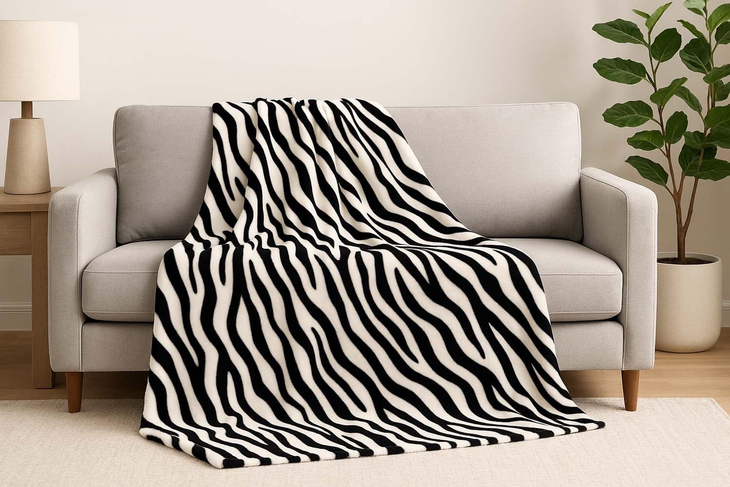 extraflauschige Flanell-Fleece-Decke in großer Größe 150x200cm; im angesagten Zebra-Look
