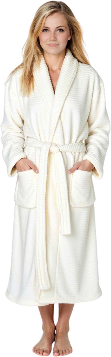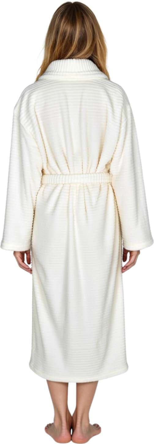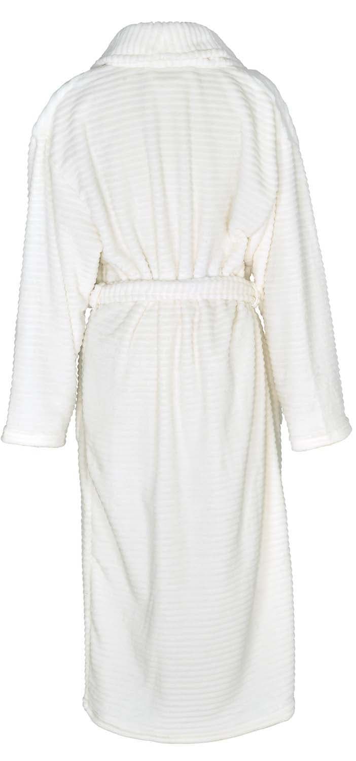 Dieser hochwertige Haus- und Bademantel für Damen und Herren vereint zeitlosen Stil mit maximalem Komfort. Gefertigt aus weichem Flanell-Fleece in angesagter Cord-Optik, bietet er eine elegante Alternative zum klassischen Bademantel. Die warme, cremeweiße Farbe sorgt für einen dezenten, edlen Look.