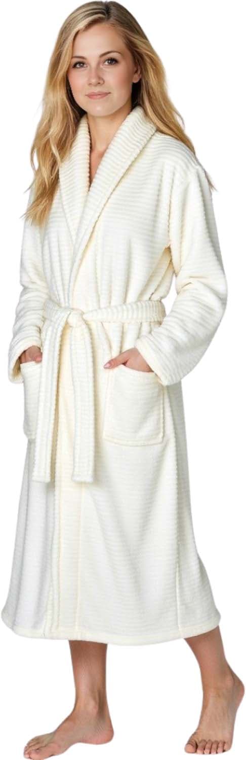 Eleganter Bademantel aus Flanell-Fleece in Cord-Optik – Stilvoll, weich & gemütlich