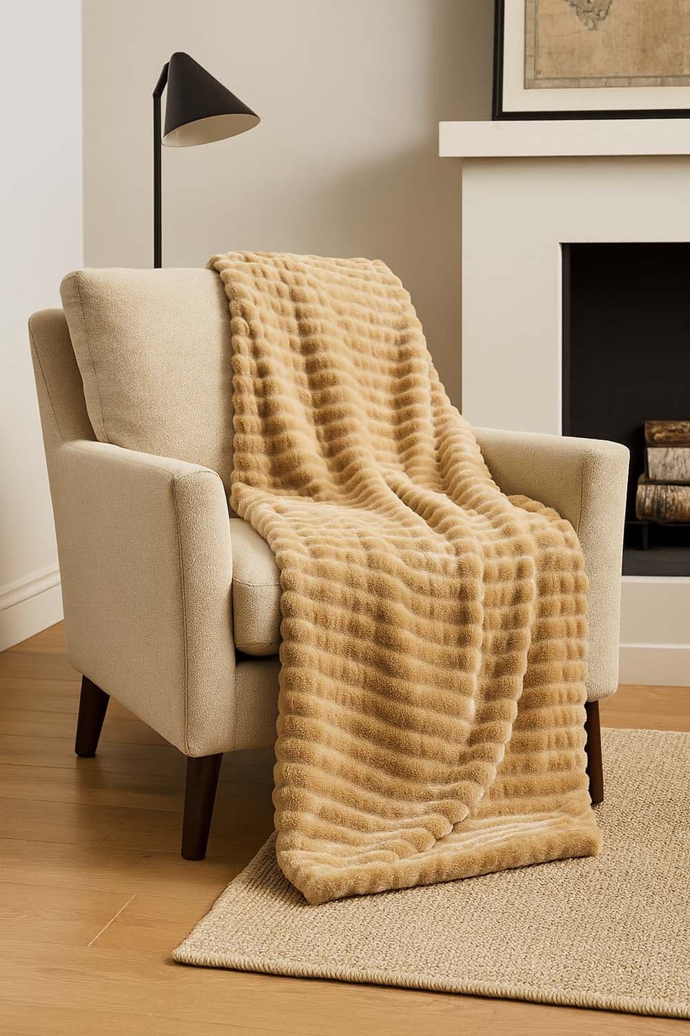extraflauschige Flanell-Fleece-Decke in großer Größe 150x200cm; mit moderner Wellen-Optik im Gewebe
