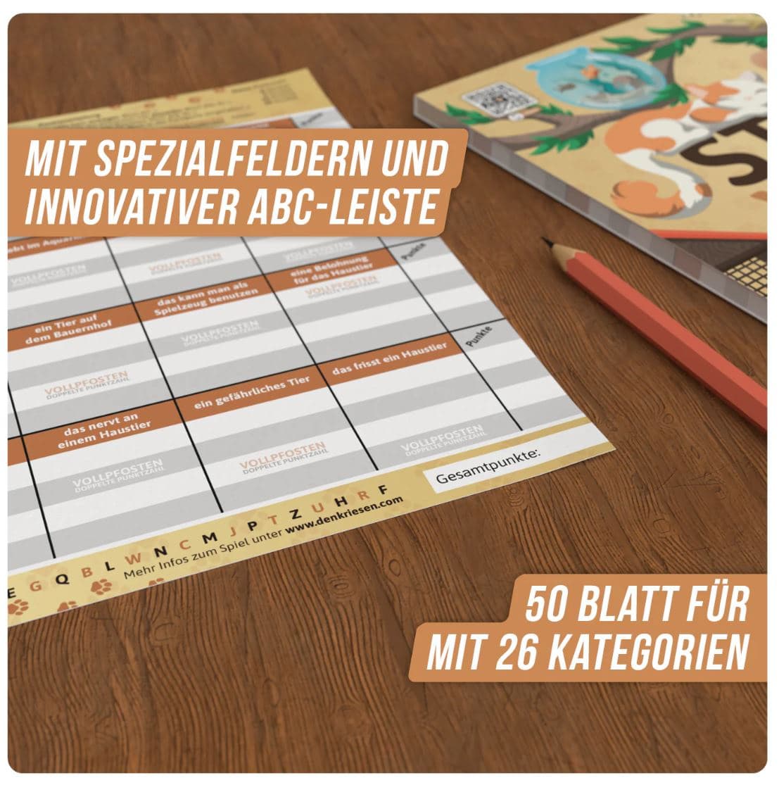 Denkriesen - Stadt Land Vollpfosten® Haustier Edition –"Für alle Felle."| A4 Spielblock