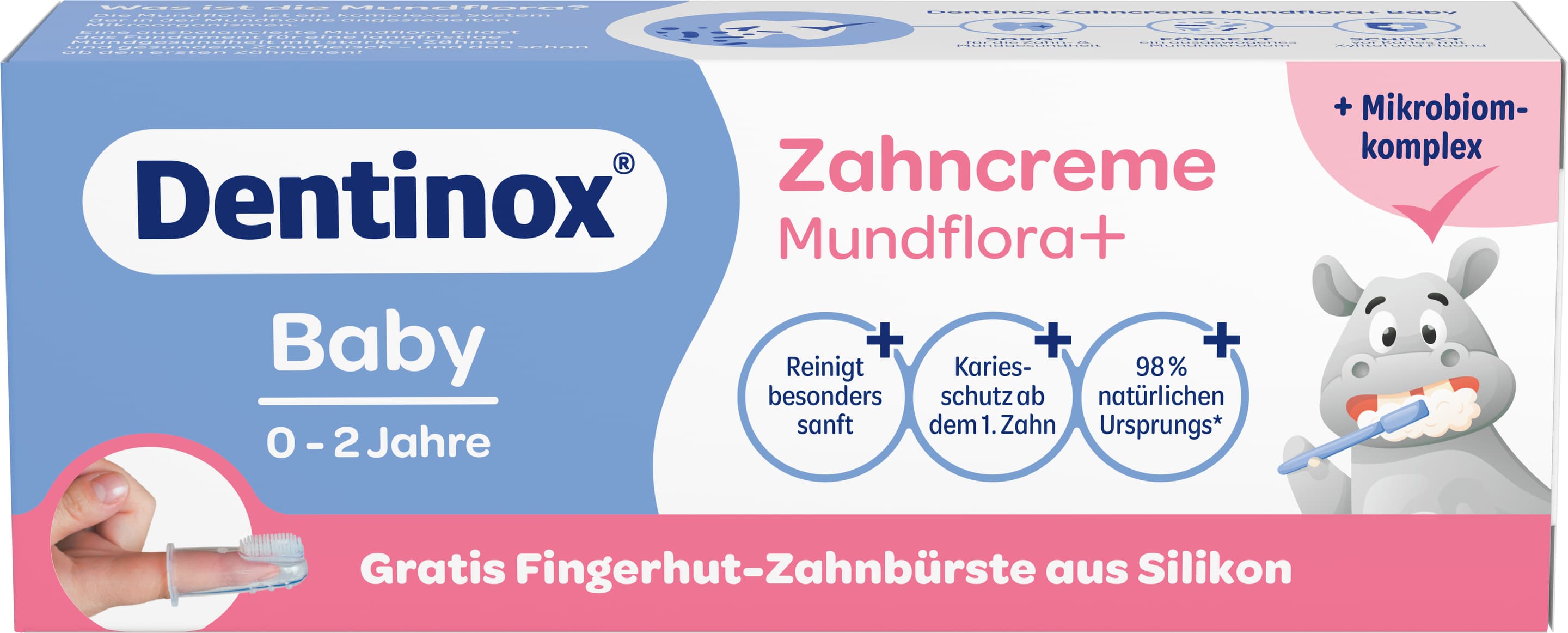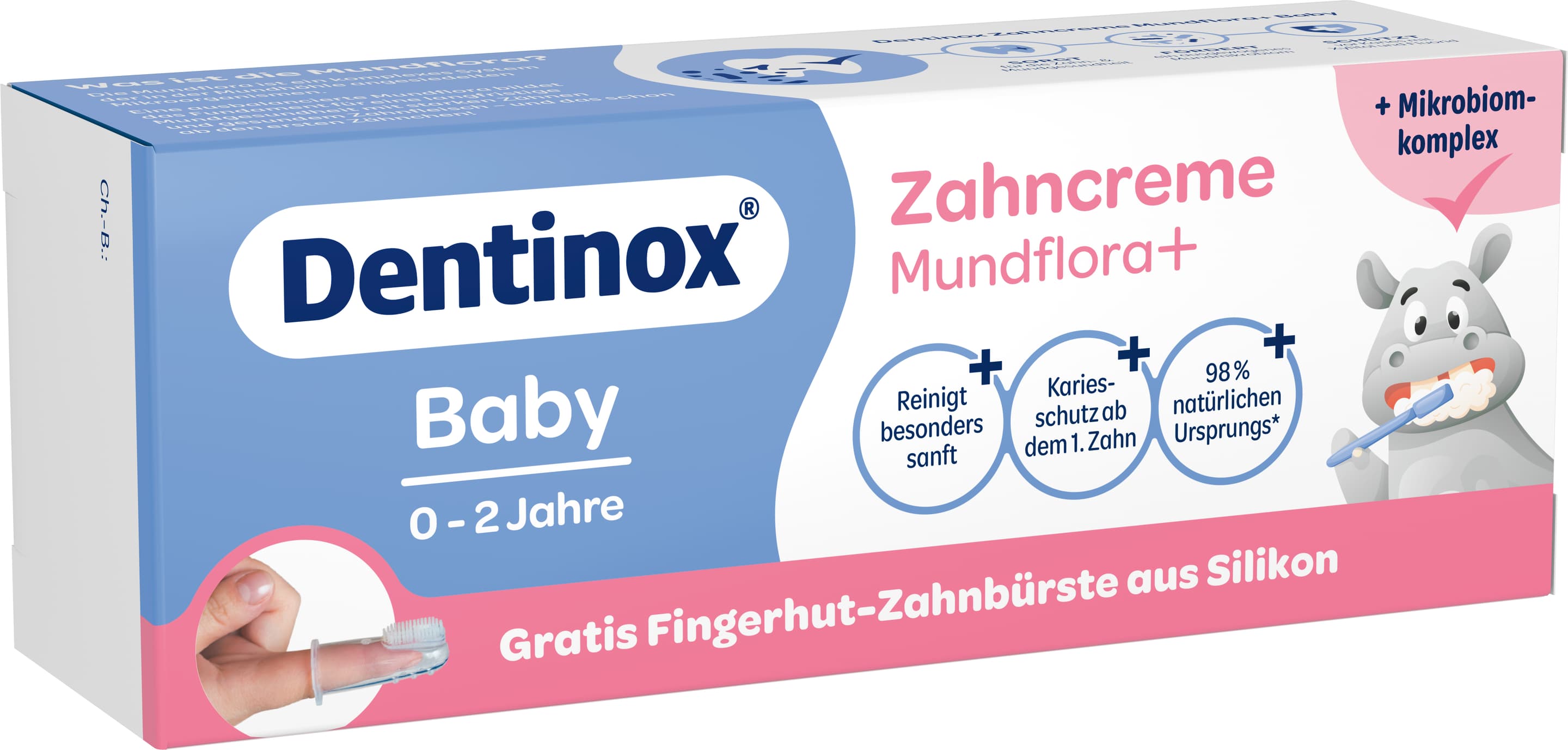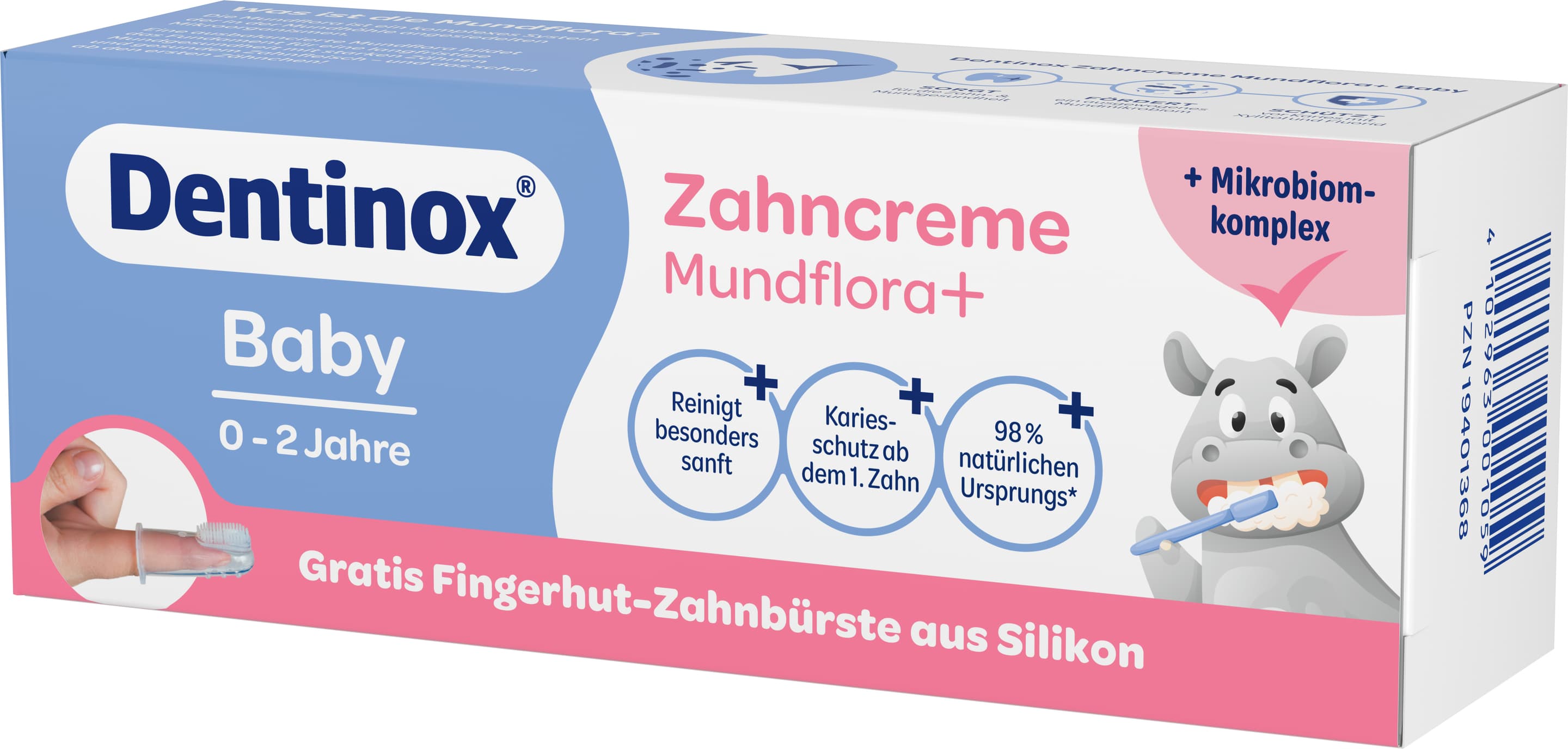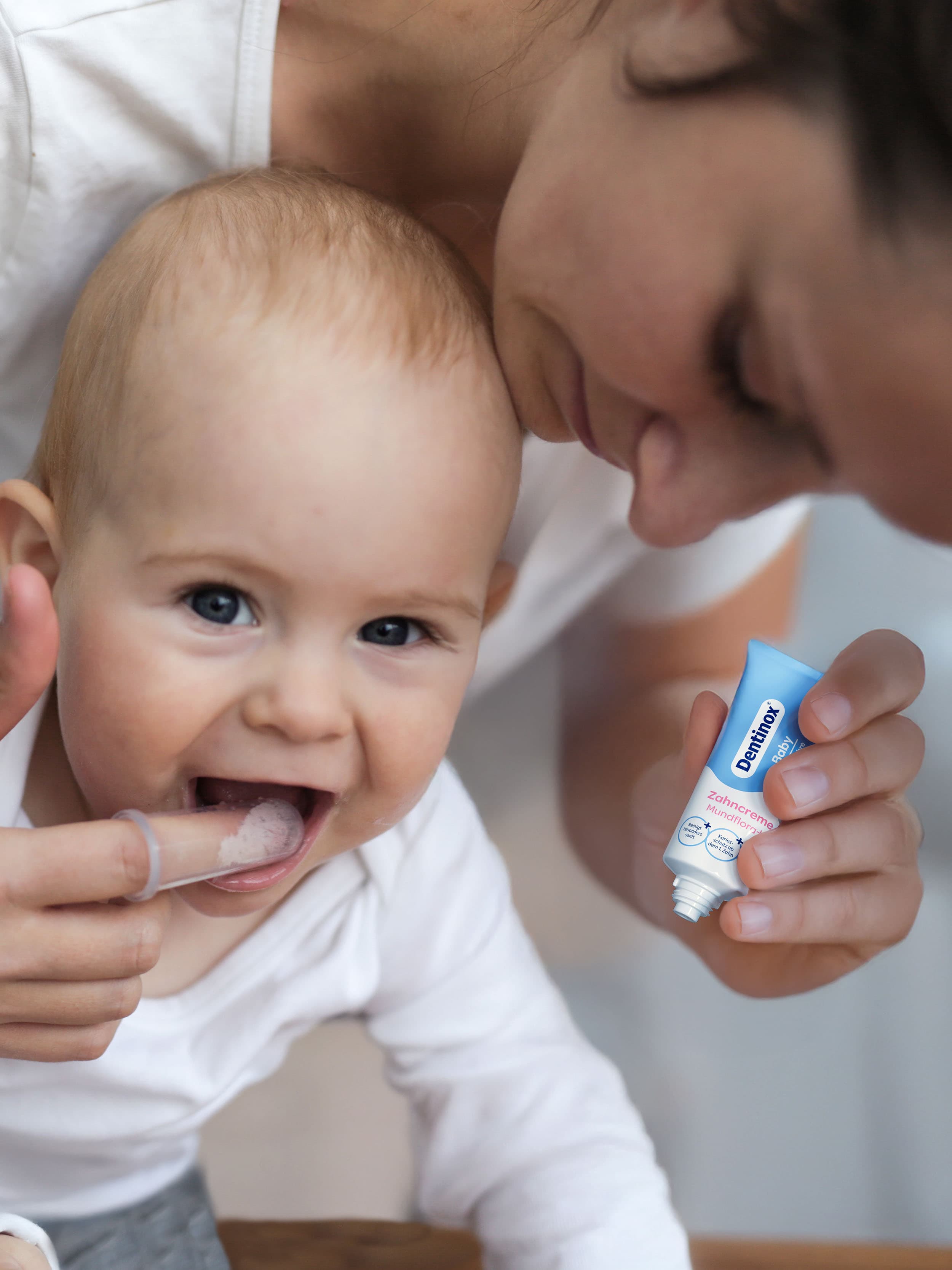 Inklusive sanfter Fingerzahnbürste aus medizinischem Silikon – perfekt für eine behutsame Zahnputzroutine von Anfang an.