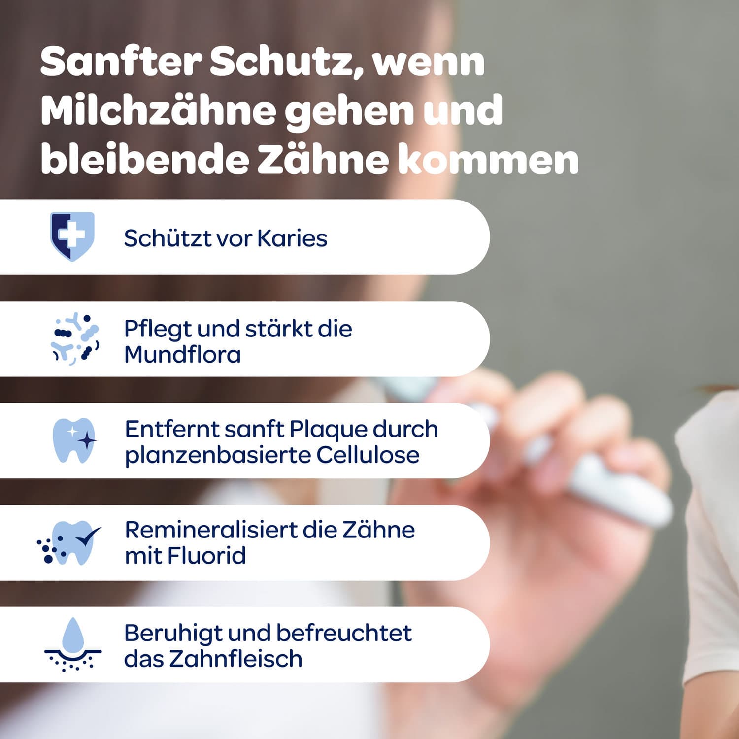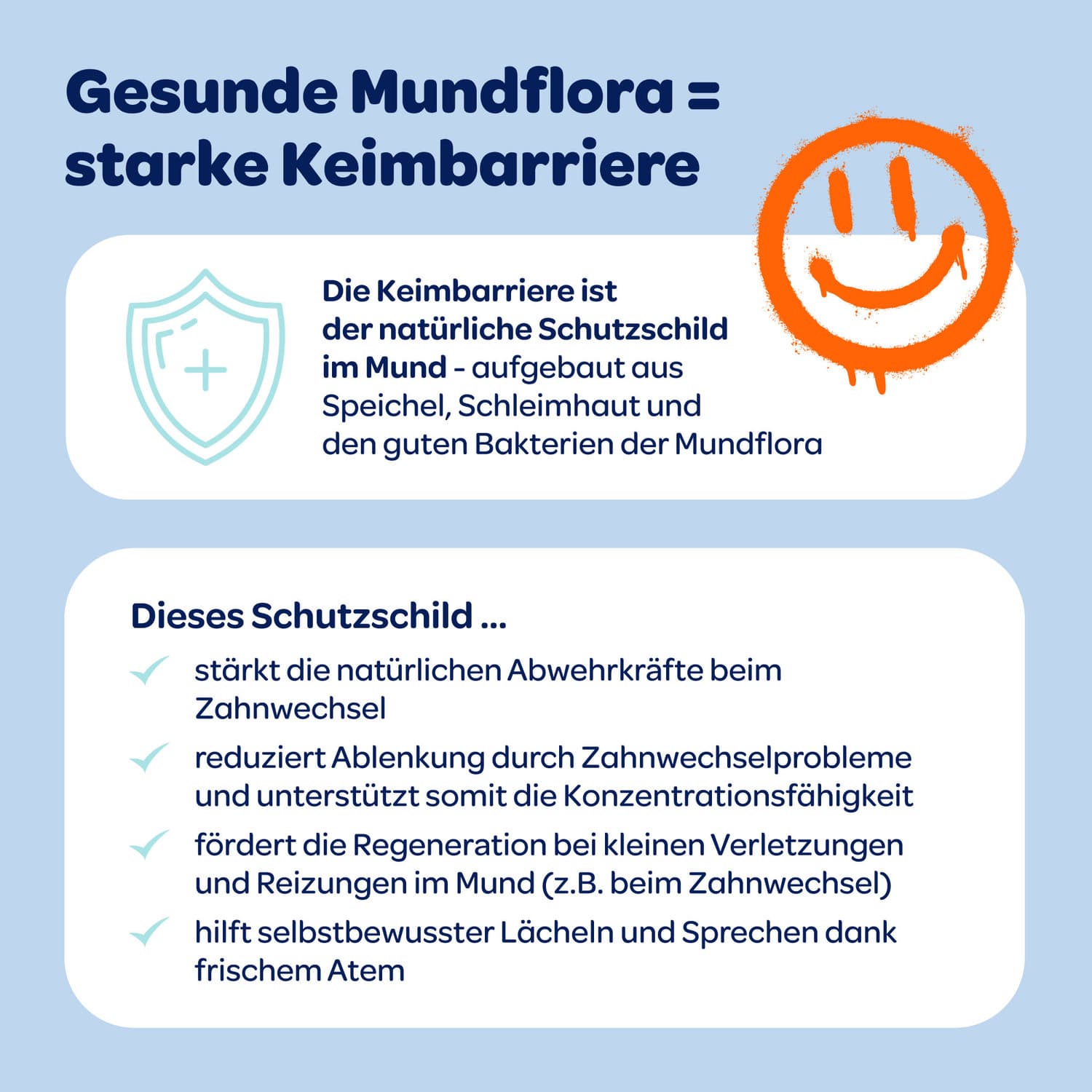 Schutz und Balance – für eine gesunde Mundflora im Zahnwechsel und starke bleibende Zähne.