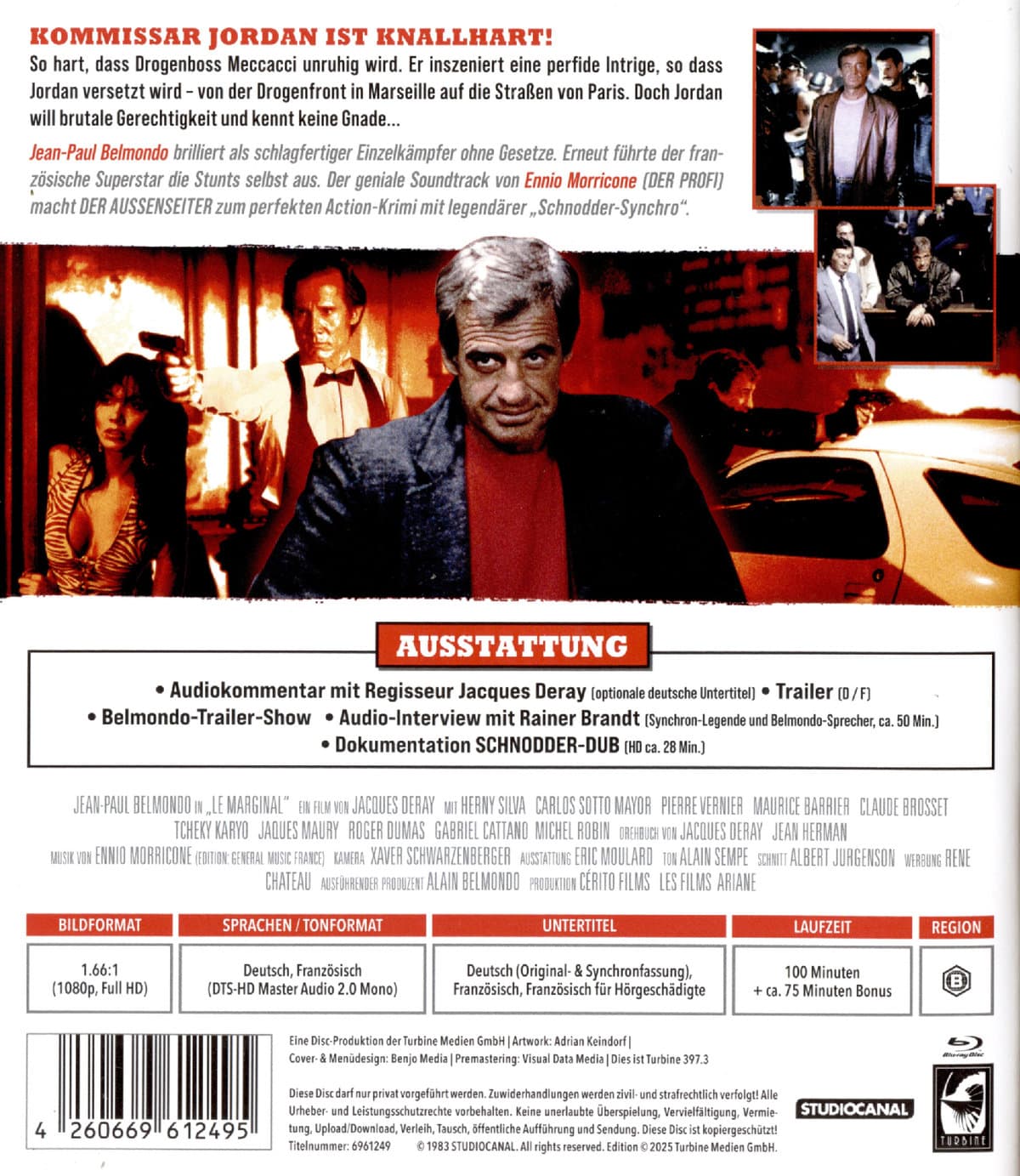 | Zusatzinfos / Bonusmaterial beim Film dabei | D; & F-Kinotrailer; Regie-Audiokommentar (optionale deutsche UT); "Schnodder-Dub"-Doku (ca. 28 Min.); Belmondo-Trailer-Show (ca. 45 Min.); Audio-Interview mit Synchron-Legende Rainer Brandt (ca. 47 Minuten von 2009; von Gerd Naumann) |