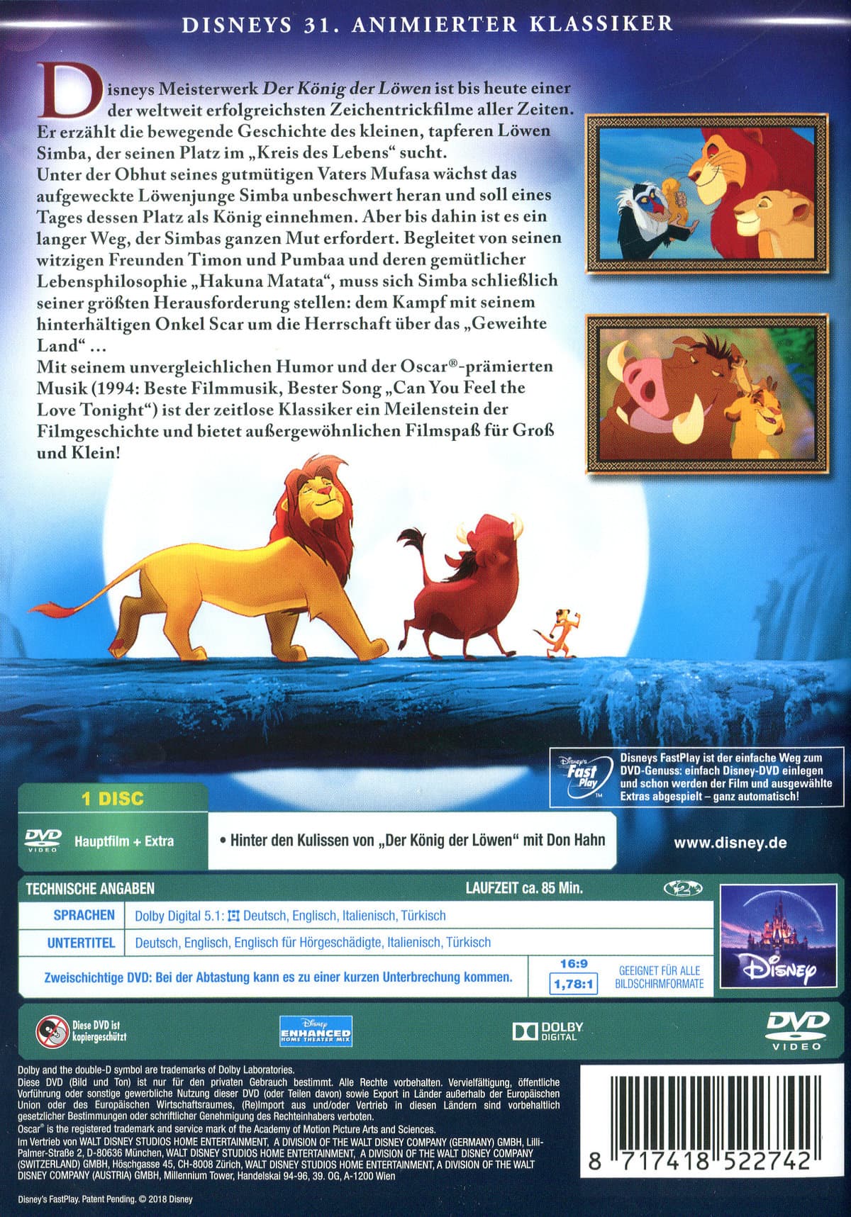 | Zusatzinfos / Bonusmaterial beim Film dabei | Hinter den Kulissen von "Der König der Löwen" mit Don Hahn; |