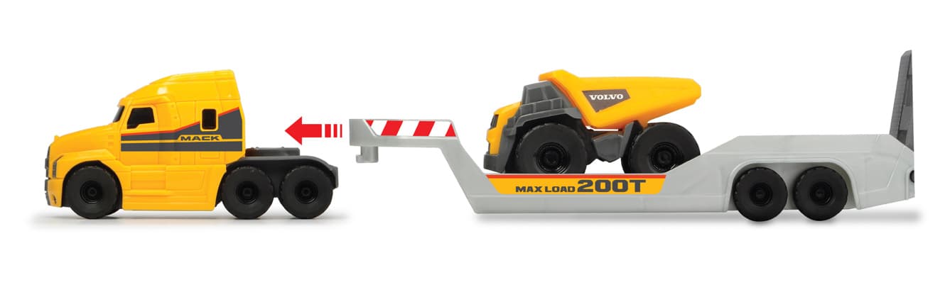 Dickie Toys Micro Builder Truck: dreifach starker SpielspaßDas Dickie Toys Micro Builder Truck Spielset in Originallizenz von Volvobesteht aus drei detailverliebten Spielzeugautos mit Freilauf, mit denen Kinder ab drei Jahren ihre eigene Fantasiebaustelle entstehenlassen können. Der Mack Truck bietet eine große Ladefläche, auf der der Volvo Muldenkipper und der Radlader Platz finden. DieTruck-Ladefläche besitzt eine bewegliche Klappe. Radlader und Muldenkipper lassen sich an der Schaufel und der Containerflächeebenfalls bewegen. Auch ungeübte Kinderhände sind problemlos in der Lage, den Truck-Anhänger an- und abzukoppeln. Dieses Set bieteteinfach starken Spielspaß in dreifacher Ausführung.• Mack Truck mit Freilauf inkl. 2 VolvoFahrzeugen• Muldenkipper und Radlader• bewegliche Teile an allen Fahrzeugen• Anhänger zum Abkoppeln• Lizenz: Volvo• Länge Truck:32 cm• Länge Fahrzeuge: 9 cm• Altersempfehlung: 3+