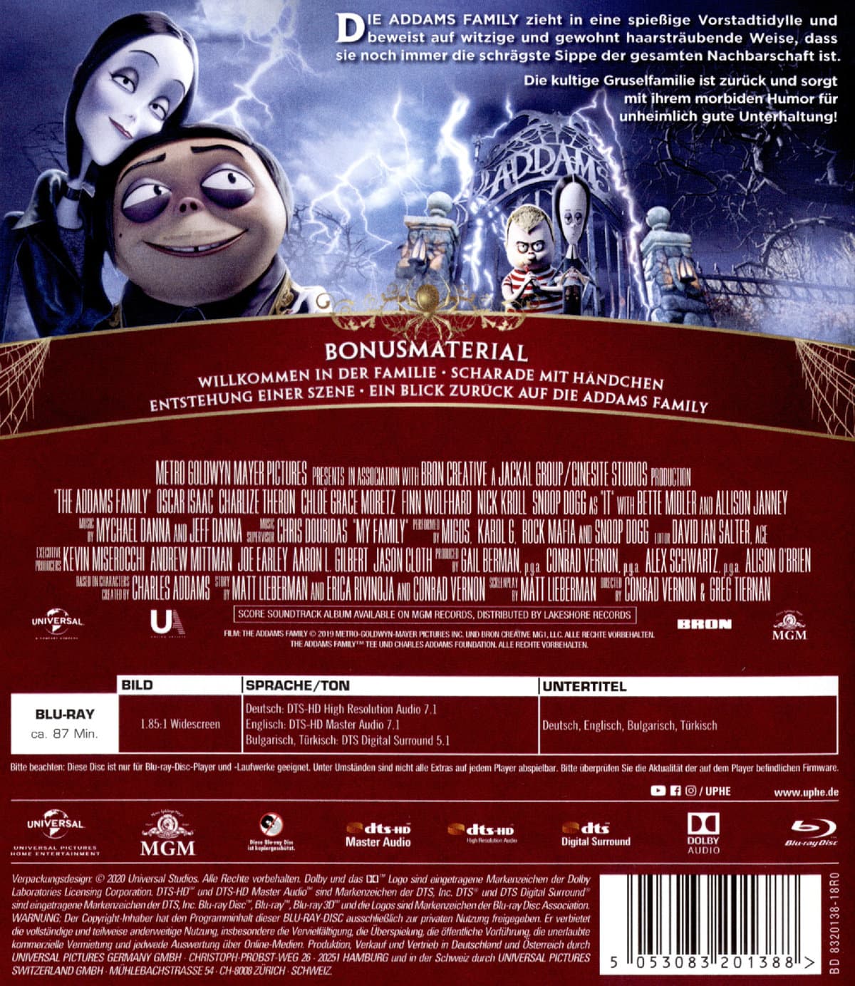 Zusatzinfos / Bonusmaterial beim Film dabeiWillkommen in der Familie; Scharade mit Händchen; Entstehung einer Szene; Ein Blick zurück auf "Die Addams Family";