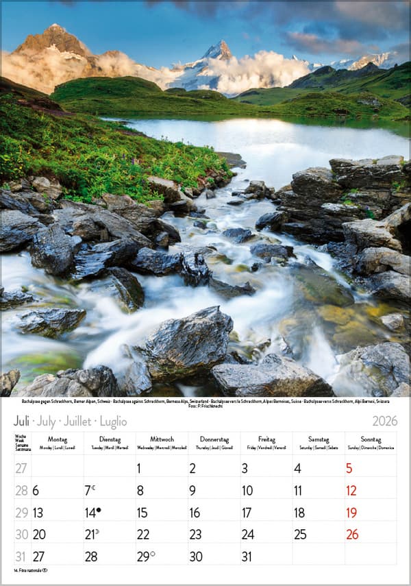Wildromantische Bergpanoramen, idyllische Seen und spektakuläre Stimmungen präsentieren die faszinierende Alpenlandschaft von ihrer besten Seite. Hervorragende Druckqualität bis ins Detail Neutrales Kalendarium für alle Länder FSC zertifiziertes Papier aus verantwortungsvollen Quellen Korsch Wandkalender Entdecke die vielseitigen Einsatzmöglichkeiten für unseren Kalender, sei es im Büro, in der Küche, im Wohn- oder Schlafzimmer. Dieser Wandkalender ist nicht nur ein optisches Highlight, sondern auch ein praktischer Begleiter durch das Jahr. Er begeistert mit wechselnden, einzigartigen Motiven für jede Jahreszeit. Korsch Kalender zeichnen sich durch eine herausragende Druckqualität, eine stabile Spiralbindung und hochwertiges Papier aus. Dies gewährleistet ein müheloses Umblättern der Seiten sowie eine stilvolle Dekoration deiner Räume. Wähle aus verschiedenen Formaten unserer Poster-Kalender aus, um das passende Deko-Element für deine Wand zu finden!