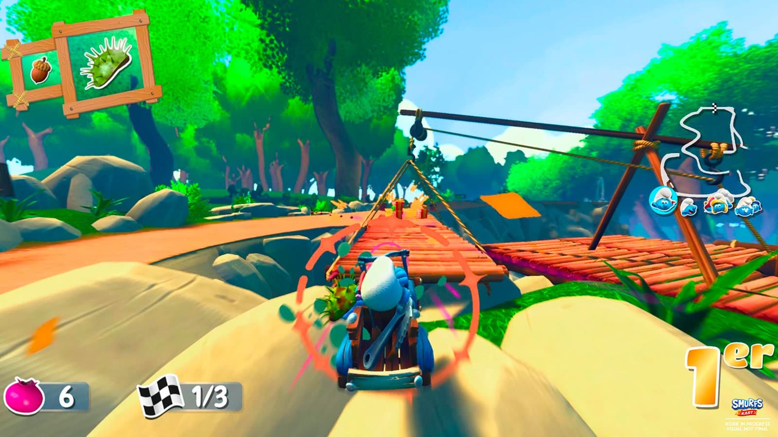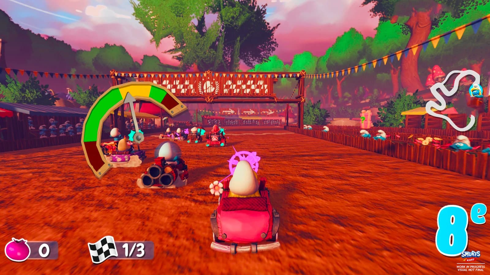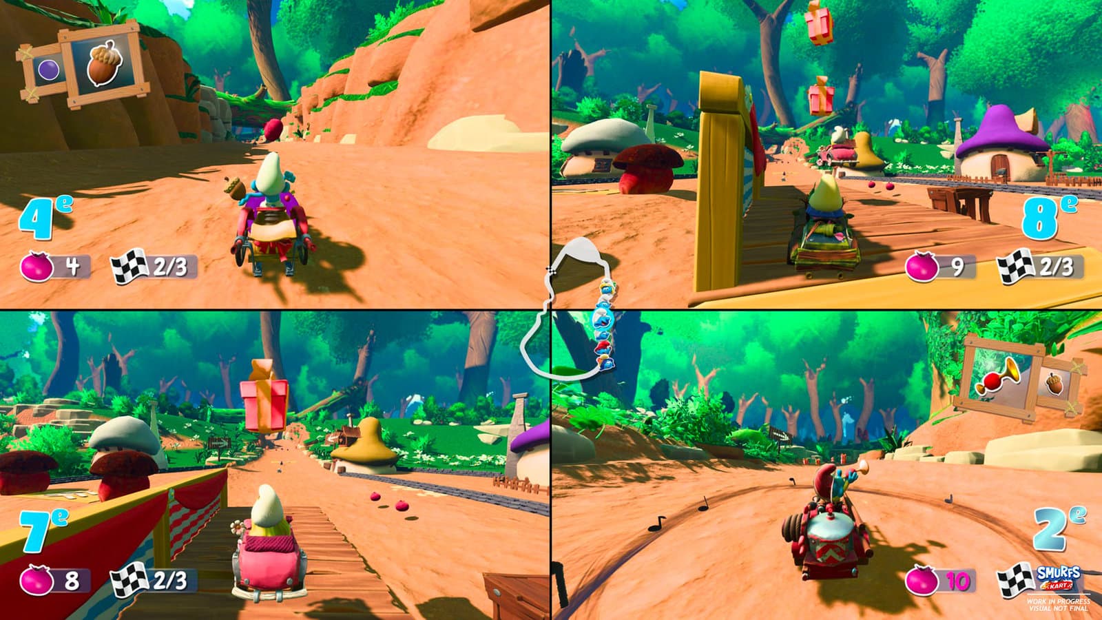 • Jeder Schlumpf hat sein eigenes Kart und einen sehr praktischen Spezialgegenstand, um es mit seinen Gegnern aufnehmen zu können