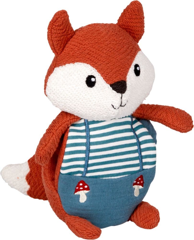 Dieses weiche Stofftier in Fuchs-Gestalt wird schnell zum besten Freund. Das integrierte Tuch bietet zusätzliche Greifmöglichkeiten und kann zum Anschmiegen genutzt werden. Durch die verwendeten Materialien ist das Spielzeug eine schöne Geschenkidee zur Geburt oder Taufe.