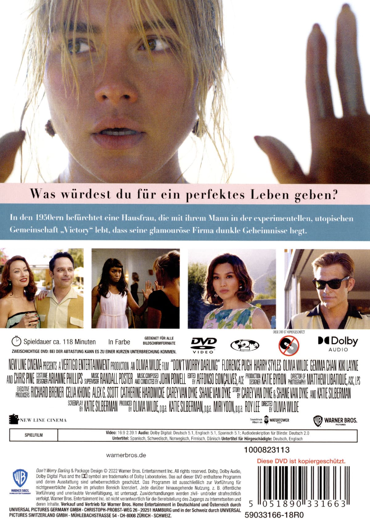| Schauspieler | Florence Pugh, Harry Styles, Chris Pine, Olivia Wilde, Gemma Chan, KiKi Layne, Nick Kroll |