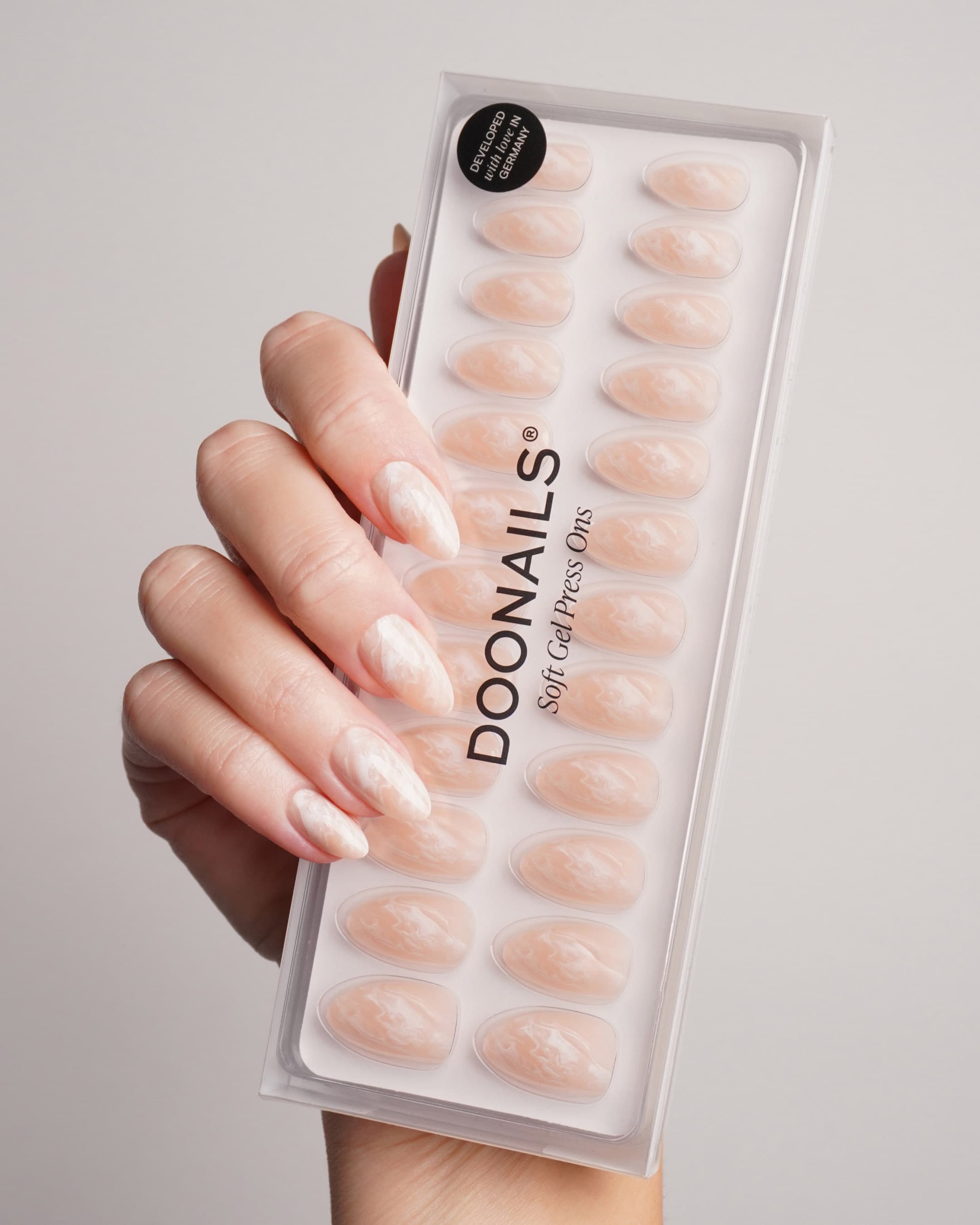 DOONAILS Soft Gel Press Ons Short Almond Nude Marble