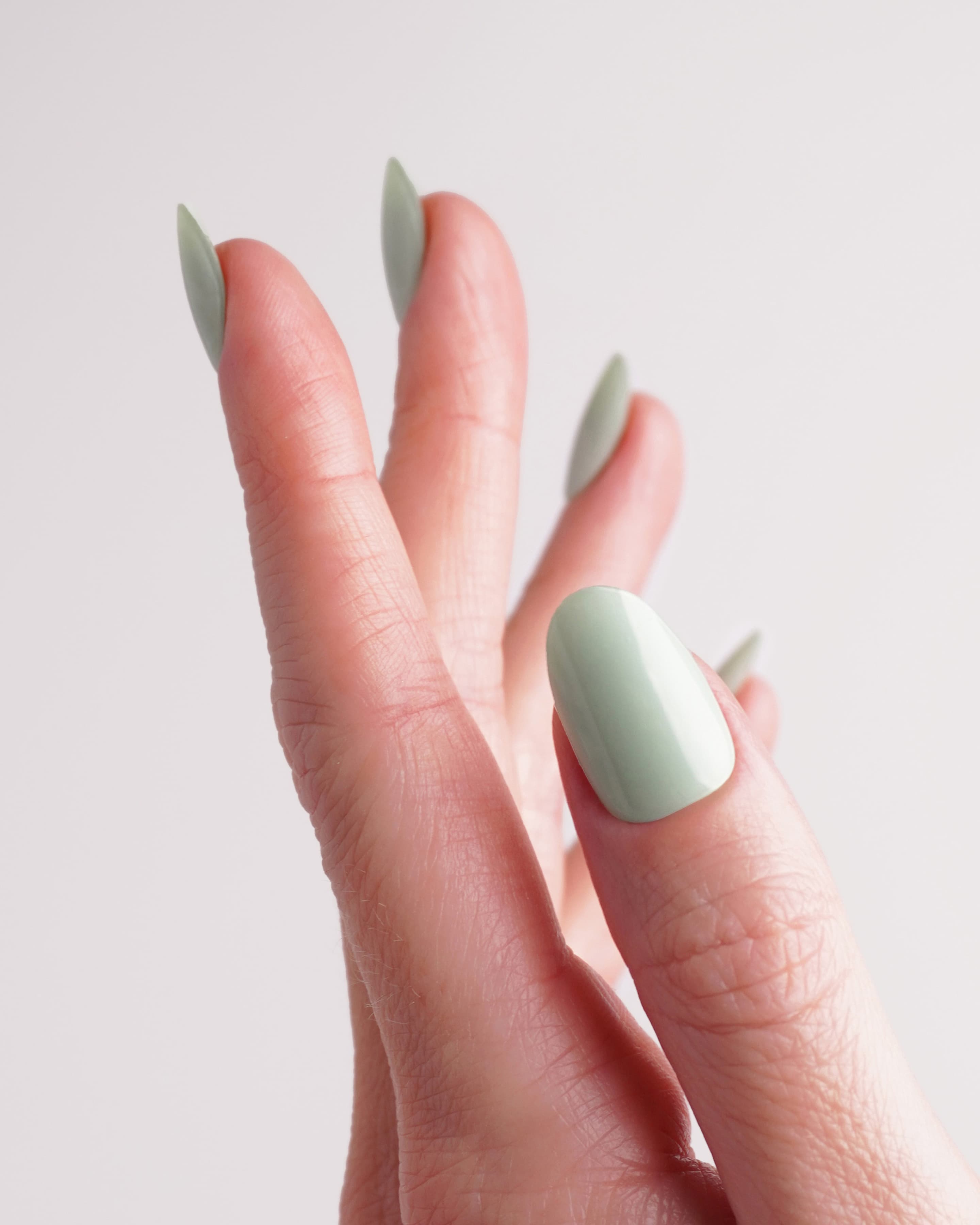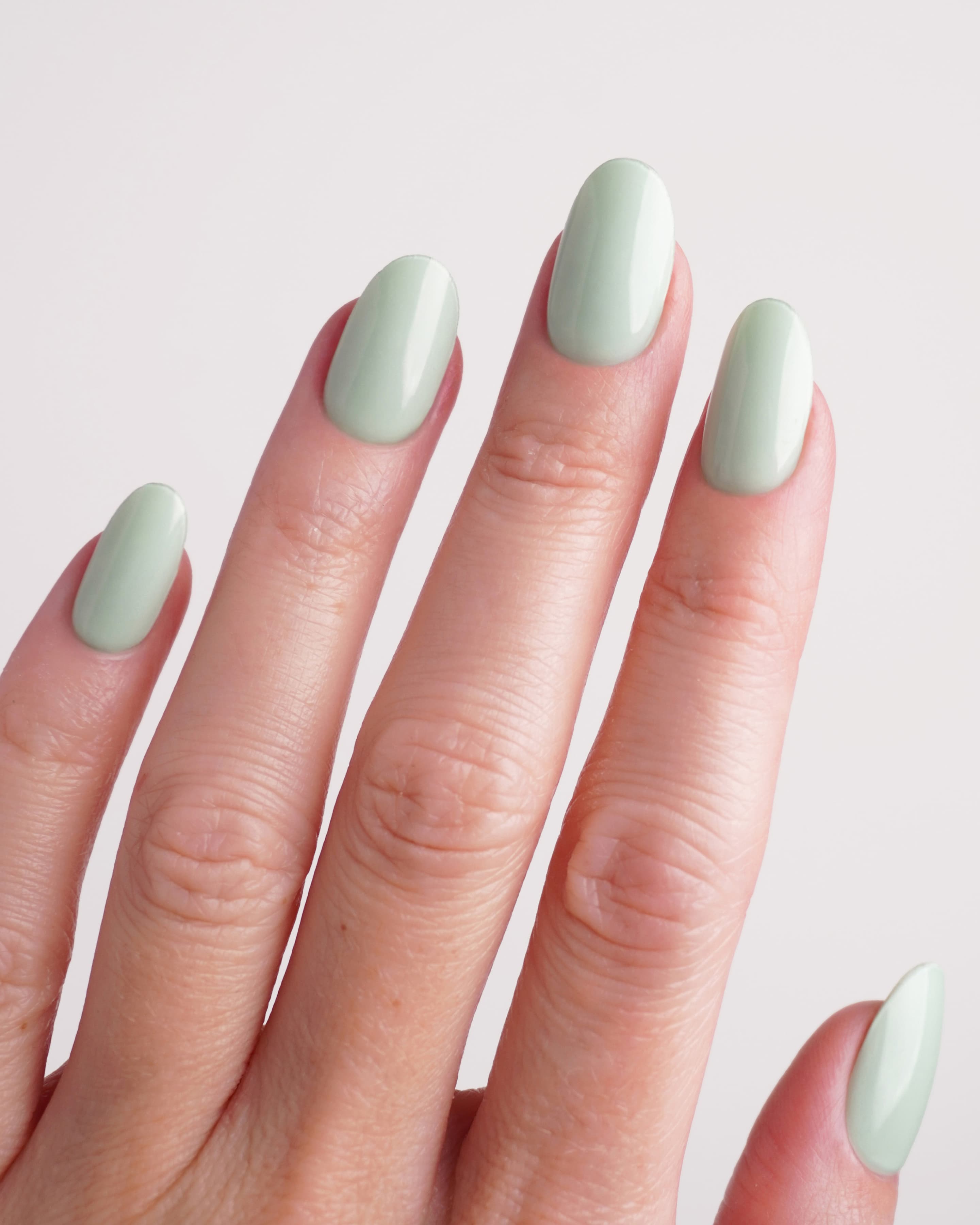 Sanftes Pastellgrün für einen frischen, natürlichen Look.