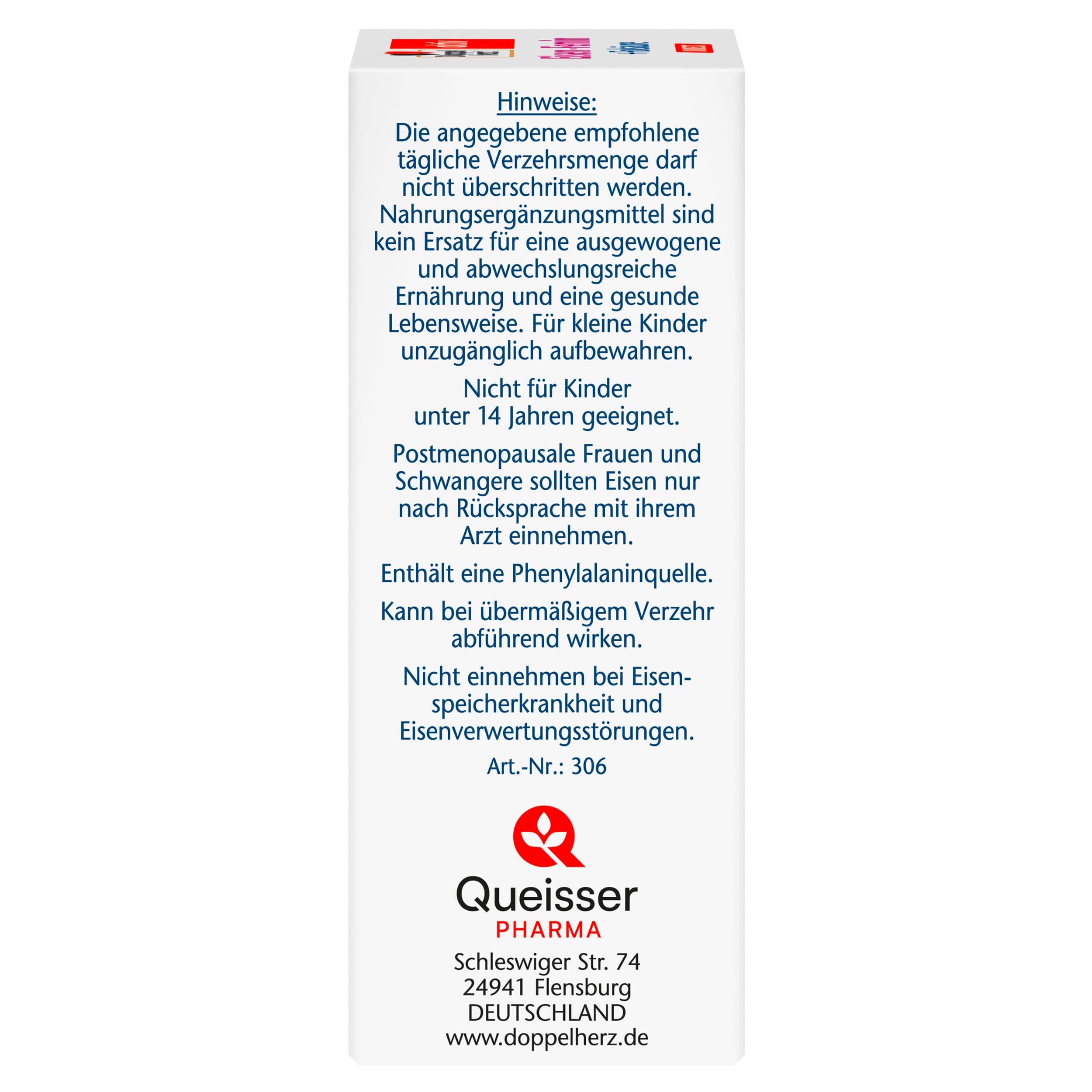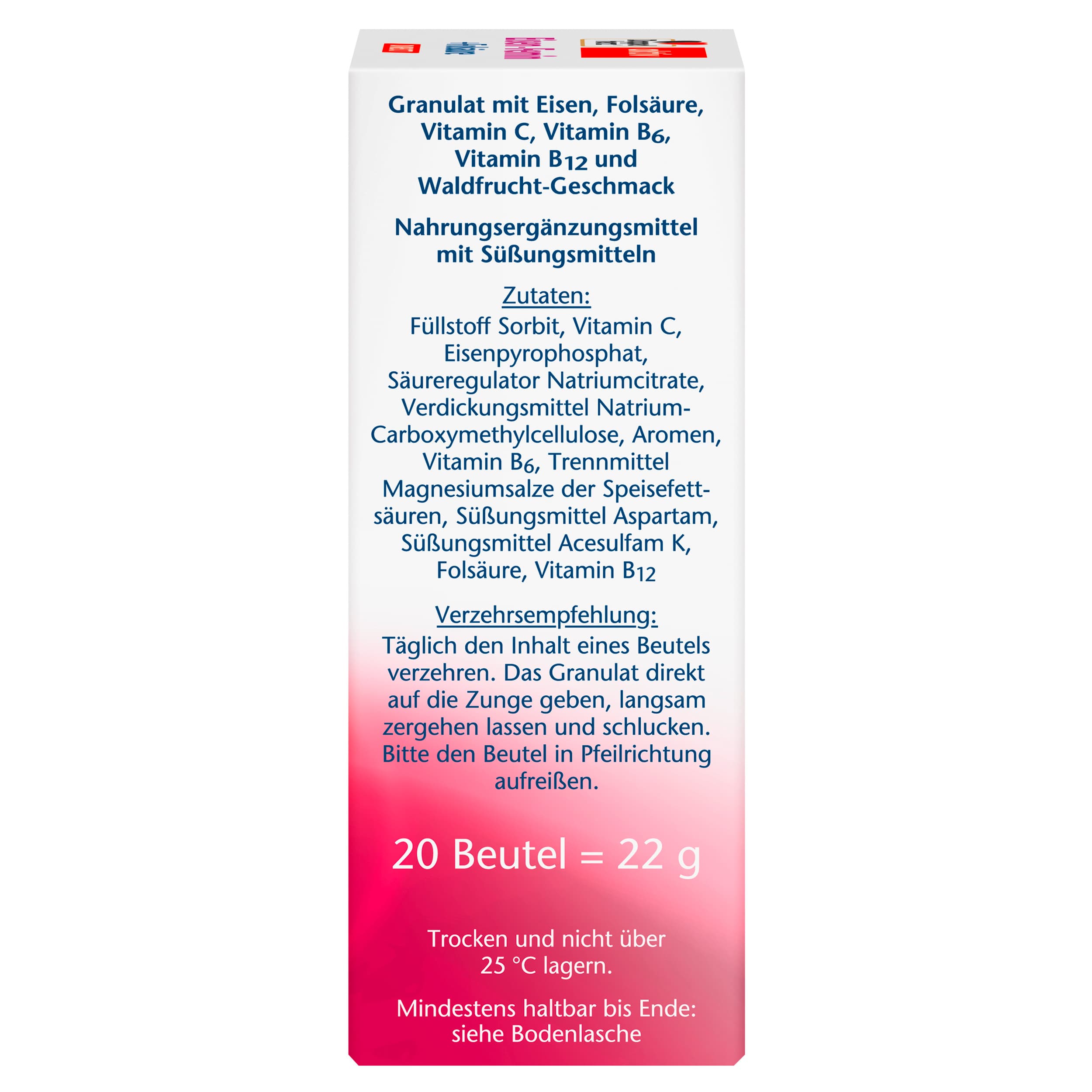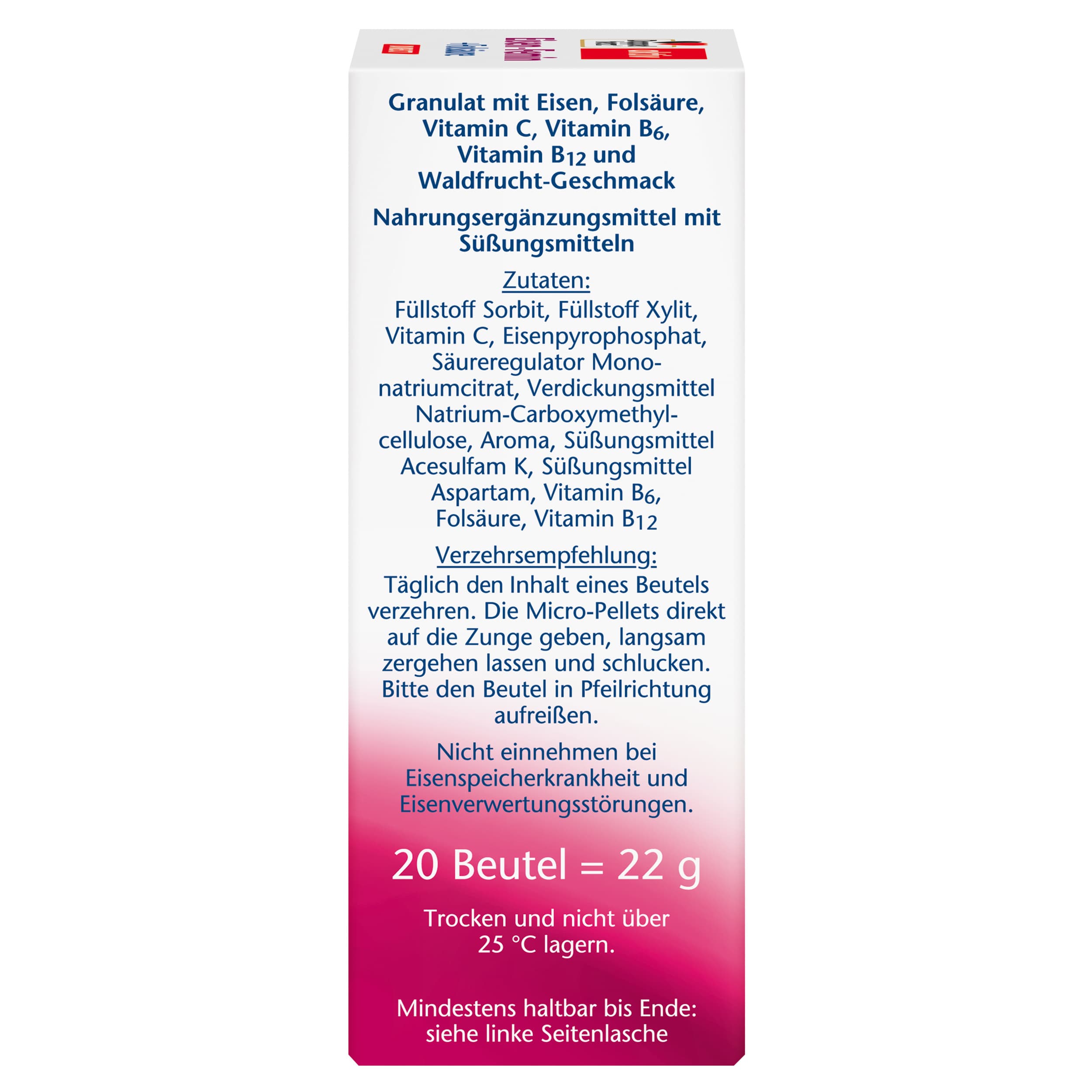 - 14 mg Eisen kombiniert mit Vitamin C + B-Vitaminen