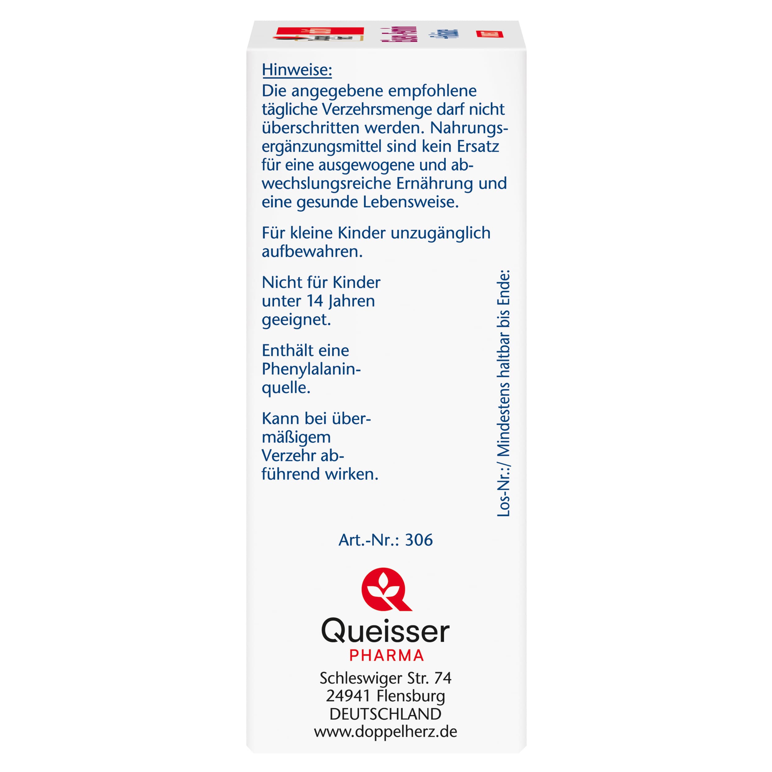 Die angegebene empfohlene tägliche Verzehrsmenge darf nicht überschritten werden. Nahrungsergänzungsmittel sind kein Ersatz für eine ausgewogene und abwechslungsreiche Ernährung und gesunde Lebensweise. Für kleine Kinder unzugänglich aufbewahren.