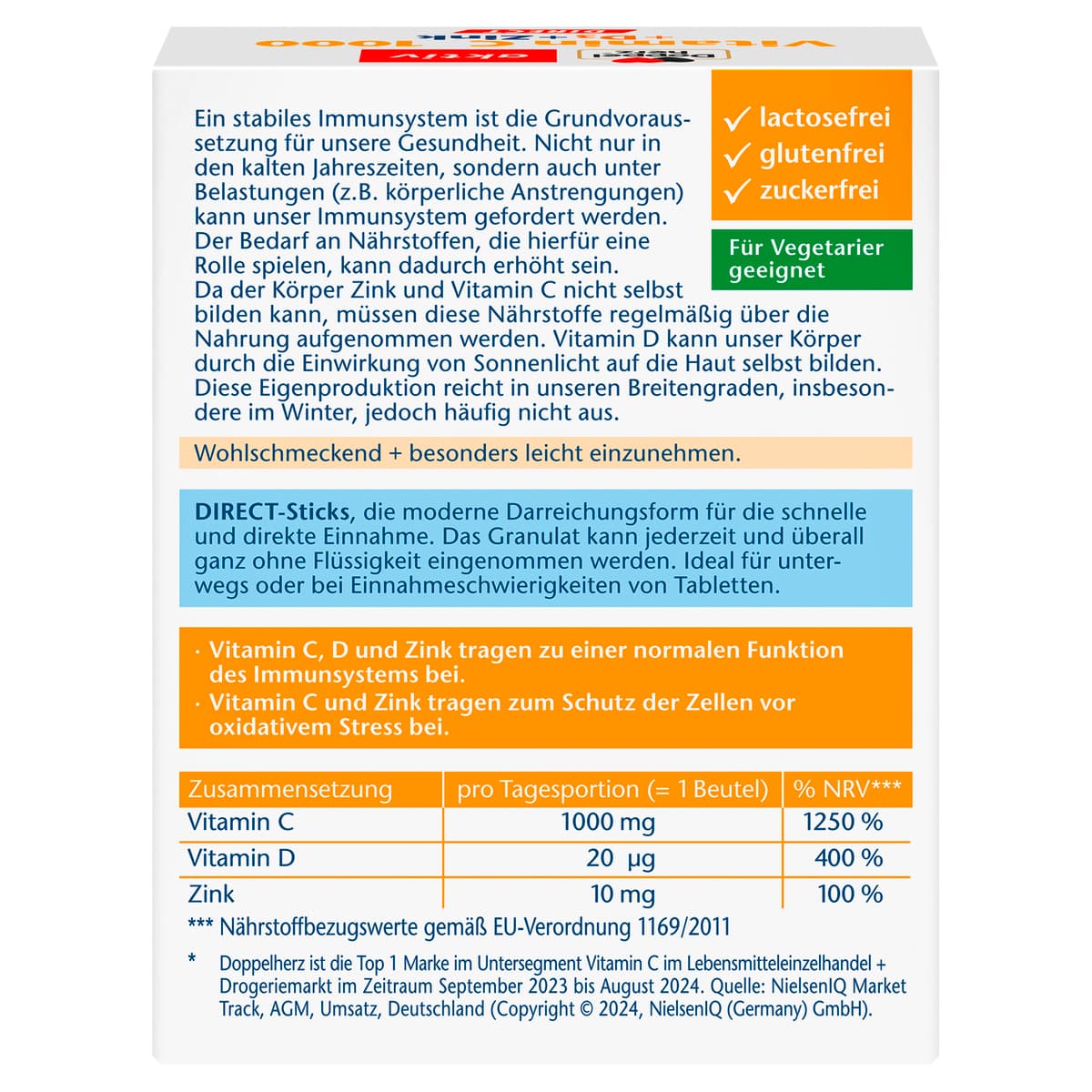 * Vitamin C, D und Zink unterstützen die normale Funktion des Immunsytems.