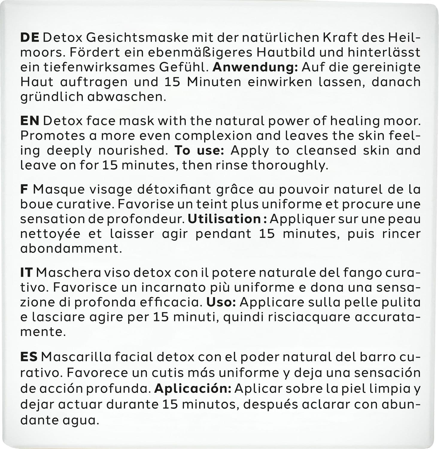 Detox Heilmoor Maske fördert ein ebenmäßigeres Hautbild und hinterlässt ein tiefenwirksames Gefühl. Lässt die Haut reiner und frischer wirken.