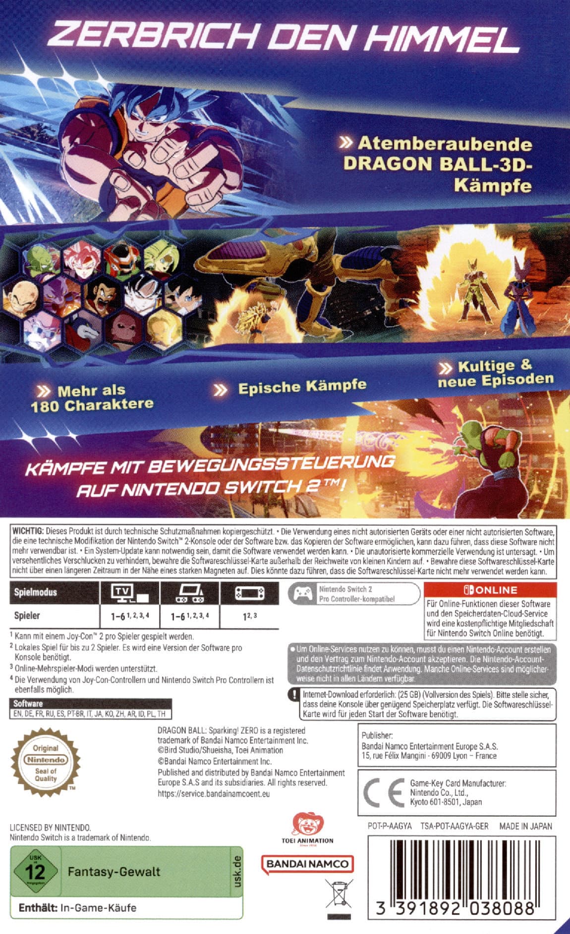 Entfessle die Stärke von mehr als 180 Kämpfern aus Dragon Ball Z, Dragon Ball Super, Dragon Ball GT und ausgewählten Dragon-Ball-Filmen - alle im Grundspiel enthalten! Jeder Charakter besitzt individuelle Fähigkeiten, Transformationen und Techniken. Nutze die Zerstörungskraft der stärksten Kämpfer, die jemals in Dragon Ball angetreten sind!