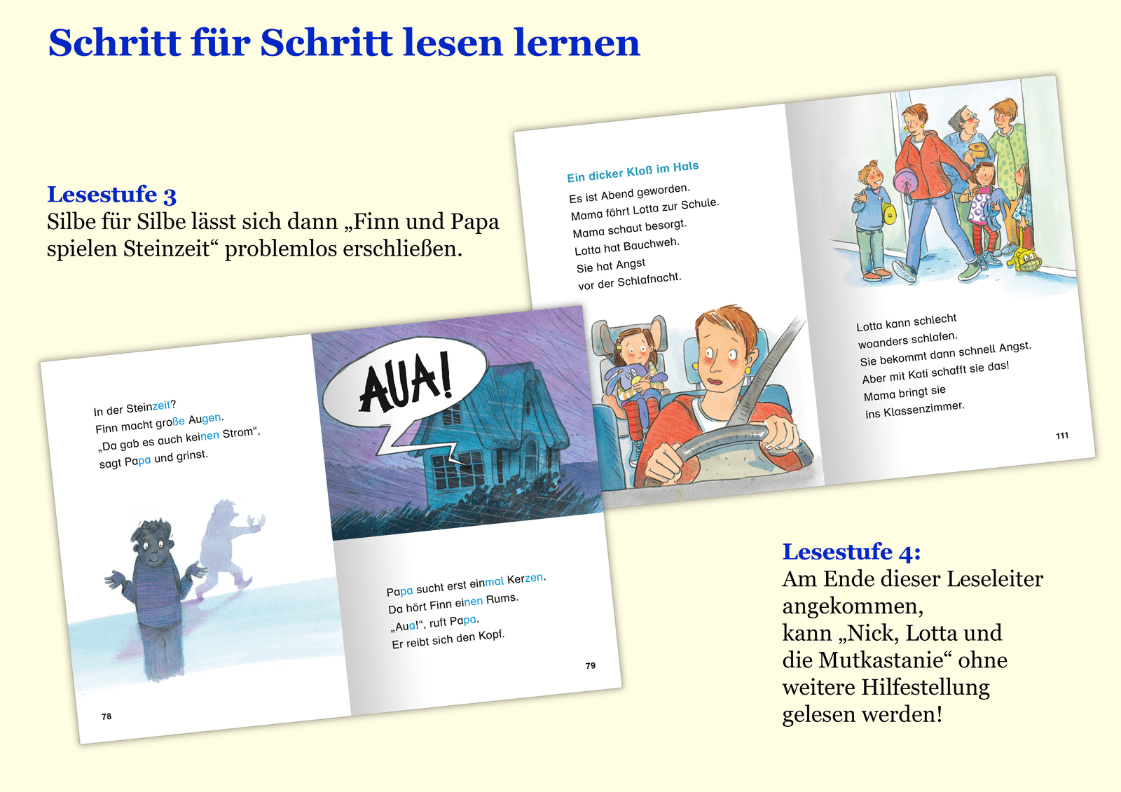 - Am Ende dieser Leseleiter angekommen, kann „Nick, Lotta und die Mutkastanie“ ohne weitere Hilfestellung gelesen werden!