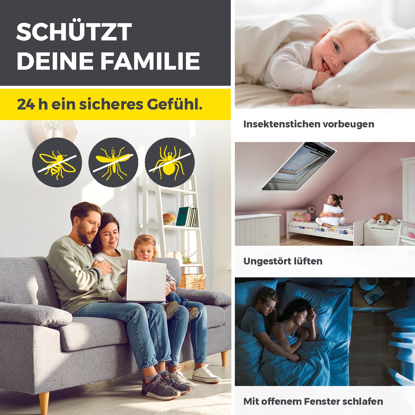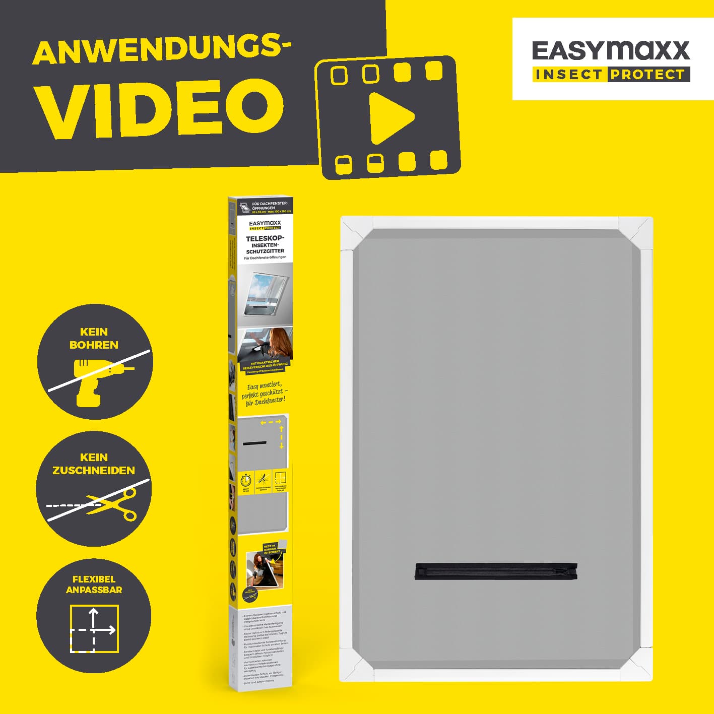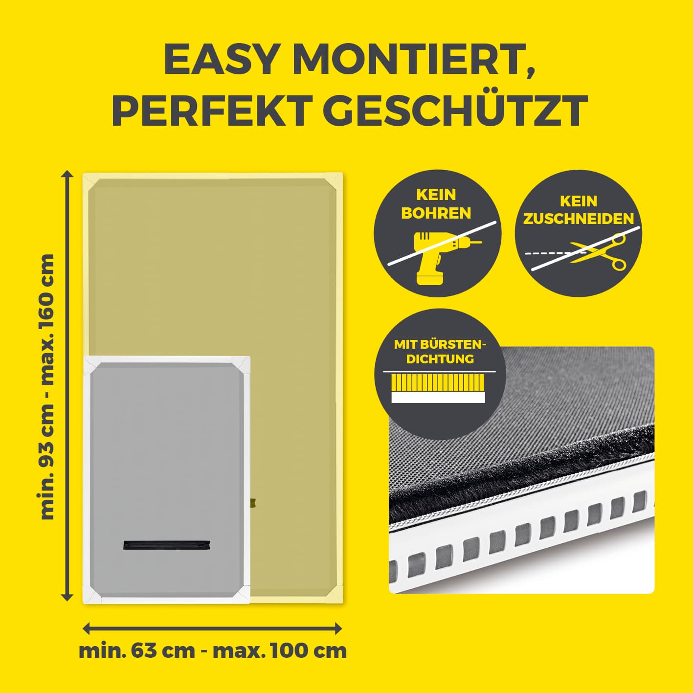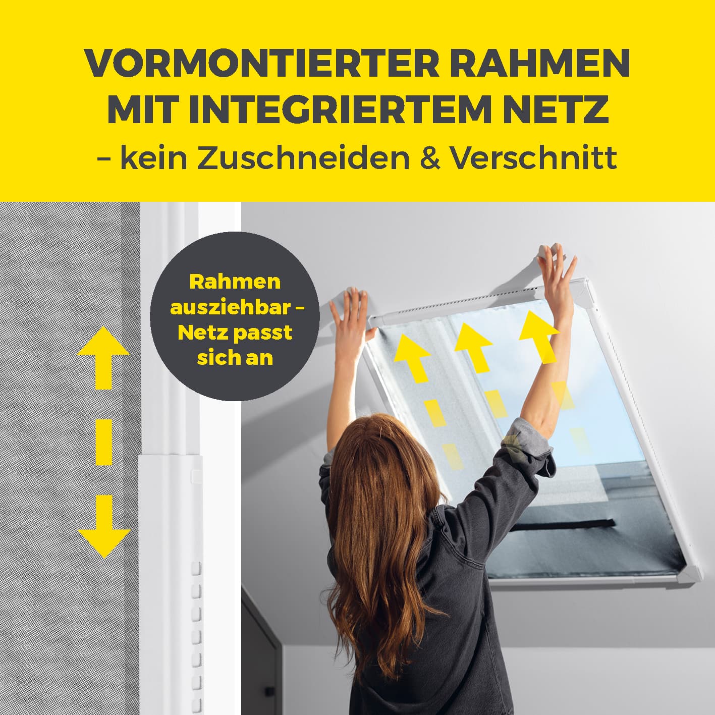 - Das Produkt eignet sich als Insektenschutz in Dachfenster-Nischen (min. 60 x 88 cm bis max. 98 x 158 cm). Es ist nicht zum Anbringen in Türöffnungen geeignet.