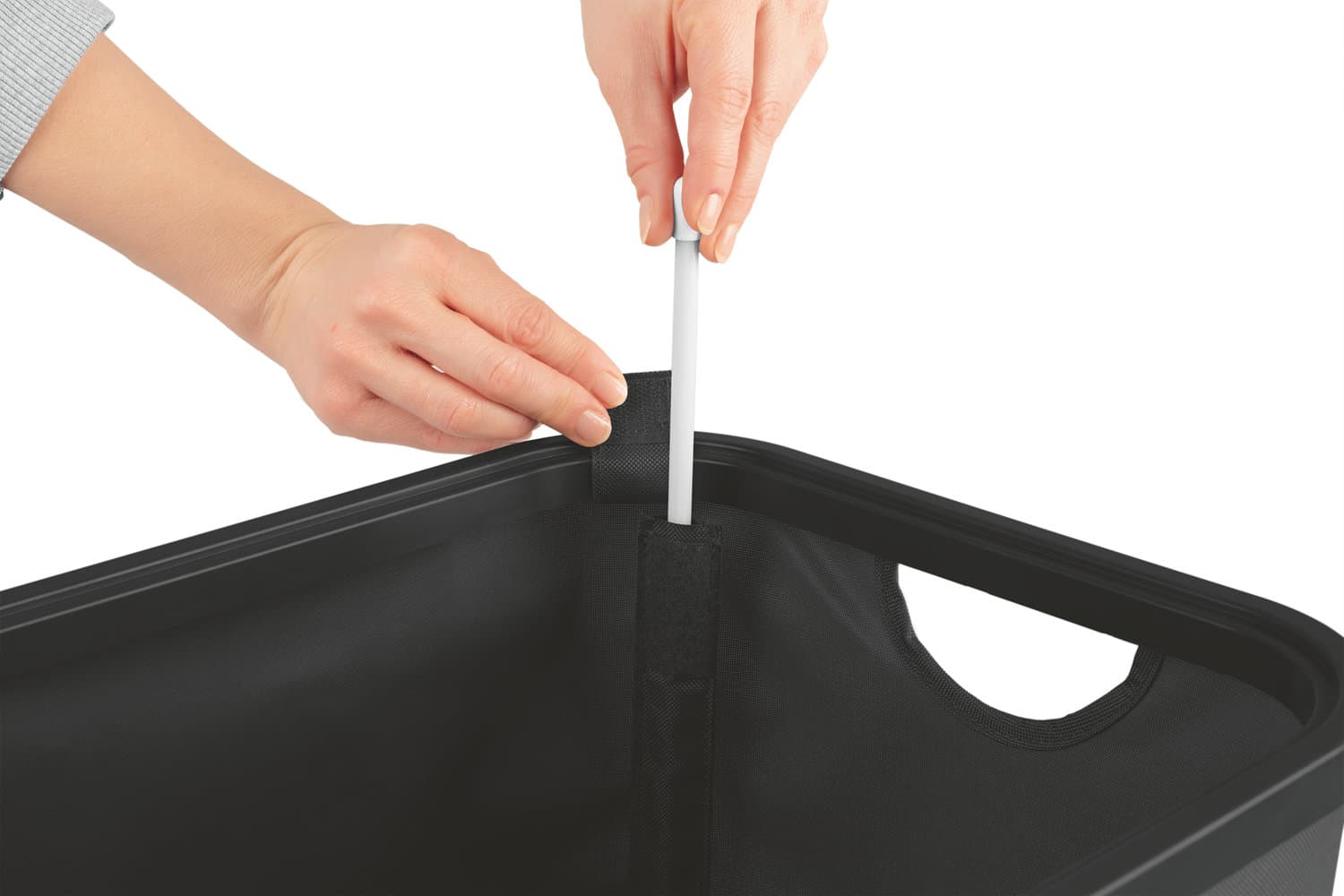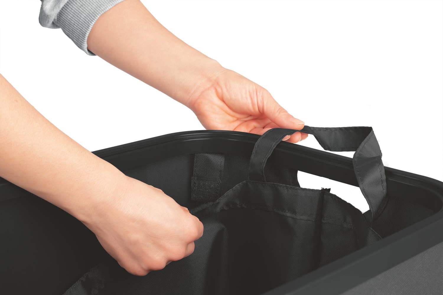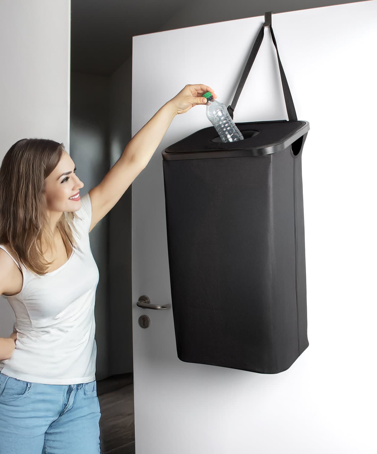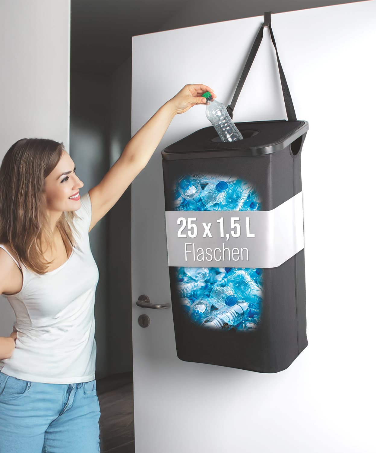 Tschüss Leergut-Chaos! Der praktische EASYmaxx Pfandflaschen Sammelbehälter sorgt für stilvolle Ordnung und müheloses Recycling. Mit einem großzügigen Fassungsvermögen von 80 Litern bietet er Platz für ca. 25 leere Flaschen à 1,5 Liter – ideal für Kunststoffflaschen und Dosen. Dank des cleveren 2-in-1-Designs kannst du den Behälter entweder frei aufstellen oder platzsparend an der Tür aufhängen. So nutzt du ungenutzten Raum hinter der Tür – perfekt für kleine Wohnungen oder enge Küchen. Und durch seine Vielseitigkeit ist er besonders flexibel einsetzbar: Ob Küche, Flur oder Abstellkammer – der Behälter passt sich deinem Platzangebot und Einsatzort optimal an. Der mitgelieferte Türhaken ermöglicht eine schnelle Montage – ganz ohne Bohren oder Kleben. Besonders praktisch: Der höhenverstellbare Gurt passt sich flexibel an die Türhöhe an – für bequemes Einwerfen ganz ohne Bücken. Zwei herausnehmbare Tragetaschen machen das Recycling besonders komfortabel: Leergut einwerfen, Tasche entnehmen, wegbringen – und bei Bedarf einfach bei 30 °C in der Maschine waschen. Der Klettverschluss ermöglicht ein schnelles Entnehmen, während Tragegriff und Zugband dafür sorgen, dass beim Transport nichts herausfällt. Ein breiter Einwurf im Deckel erlaubt das mühelose Einwerfen von Flaschen – ganz ohne Öffnen des Behälters. Sein robustes, wasserabweisendes Material macht den EASYmaxx Pfandflaschen Sammelbehälter langlebig und alltagstauglich. Das durchdachte Design sorgt für Stabilität dank Stützstangen in den Ecken, die sich schnell aufbauen lassen. Und bei Nichtgebrauch? Einfach platzsparend zusammenfalten. Für mehr Effizienz und Sauberkeit im Alltag – Recycling war noch nie so einfach, elegant und praktisch!